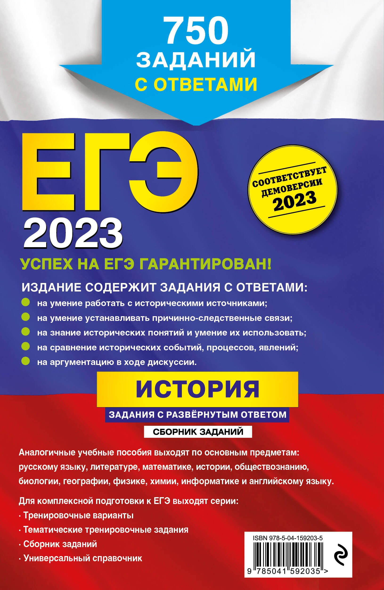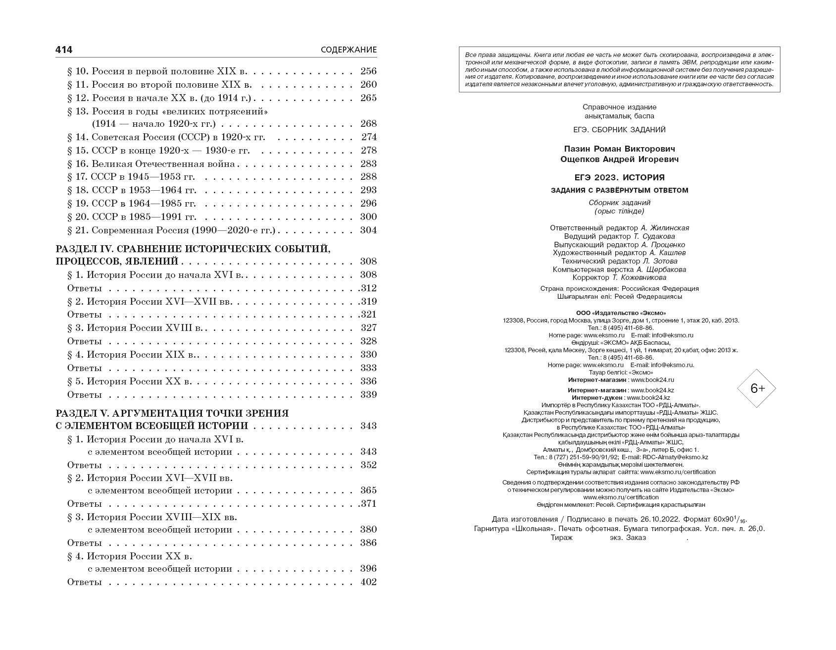 Пособие адресовано учащимся старших классов, планирующим сдавать ЕГЭ по истории. Издание содержит: • методические рекомендации и примеры выполнения заданий с развёрнутым ответом ЕГЭ по истории; • 32 задания, направленные на анализ исторических источников по Великой Отечественной войне; • 305 тематических заданий на установление причинно-следственных связей, охватывающих курс истории с древнейших времён до современности; • 302 задания на работу с историческими понятиями, сгруппированные в хронологической последовательности; • 33 задания на сравнение исторических событий, процессов, явлений; • 77 заданий на аргументацию точки зрения с элементом всеобщей истории; • подробные ответы на все задания. Книга поможет подготовиться к самым сложным заданиям на ЕГЭ по истории, за которые можно получить максимальное количество баллов (14 из 42 первичных). Занимаясь по этому пособию, ученики смогут самостоятельно овладеть всем спектром умений и навыков работы с историческим материалом, необходимых для выполнения заданий высокого уровня сложности на ЕГЭ. Р. В. Пазин - кандидат исторических наук, автор более 200 пособий для подготовки к ОГЭ и ЕГЭ по истории и обществознанию, преподаватель Лицея НИУ «Высшая школа экономики», главный редактор журнала «Преподавание истории в школе». А. И. Ощепков - опытный преподаватель истории и обществознания, репетитор, специалист по подготовке школьников к ЕГЭ, ОГЭ и олимпиадам, автор учебных пособий по истории, автор и администратор популярных образовательных пабликов соцсети «В Контакте» «ЕГЭ. История» и «ЕГЭ. Обществознание» с суммарным числом подписчиков более 250 тысяч человек.| Издательство | ООО "Издательство "Эксмо" |