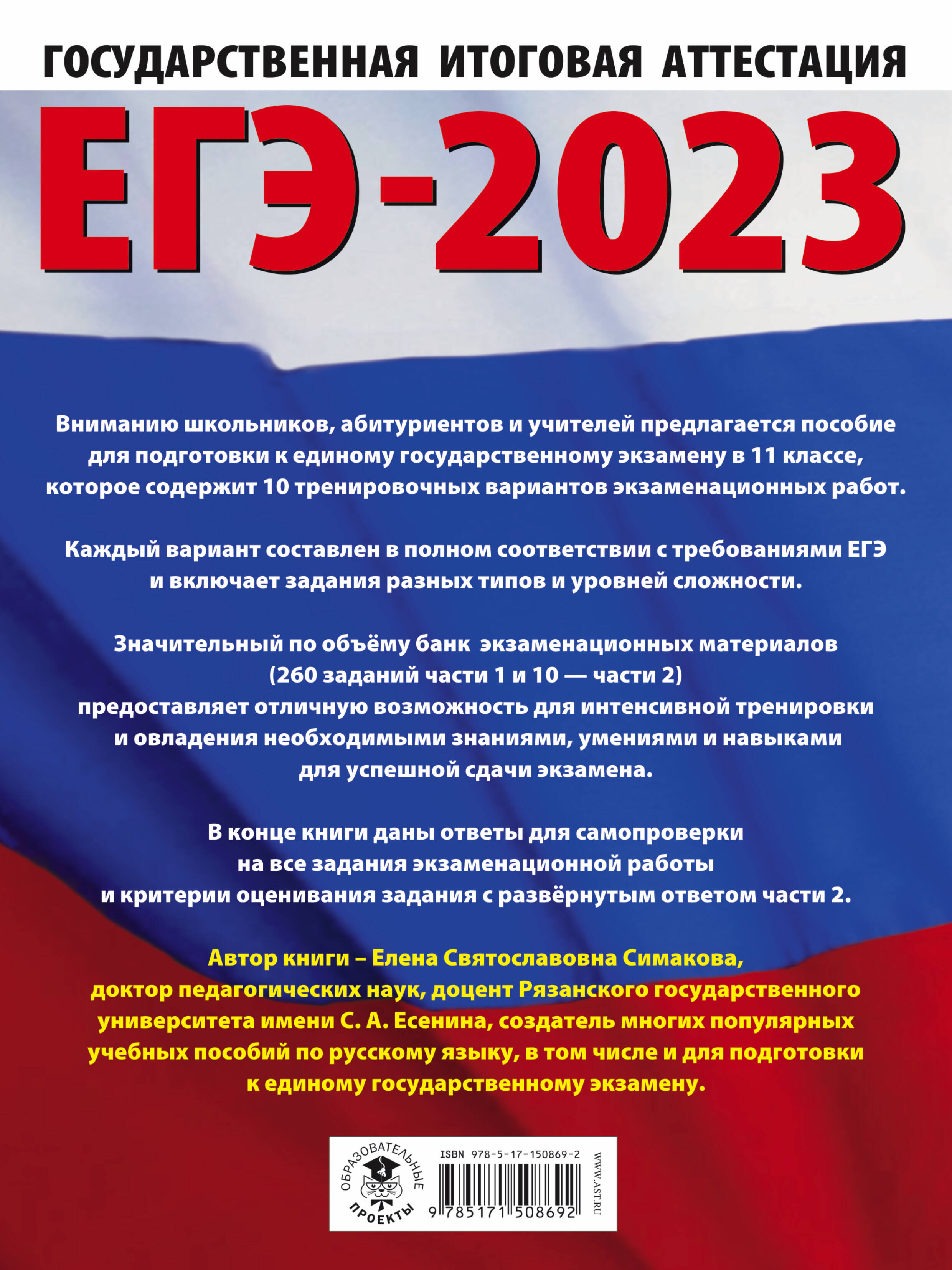 ЕГЭ-2023. Русский язык (60х84/8) 10 тренировочных вариантов экзаменационных работ для подготовки к единому государственному экзамену