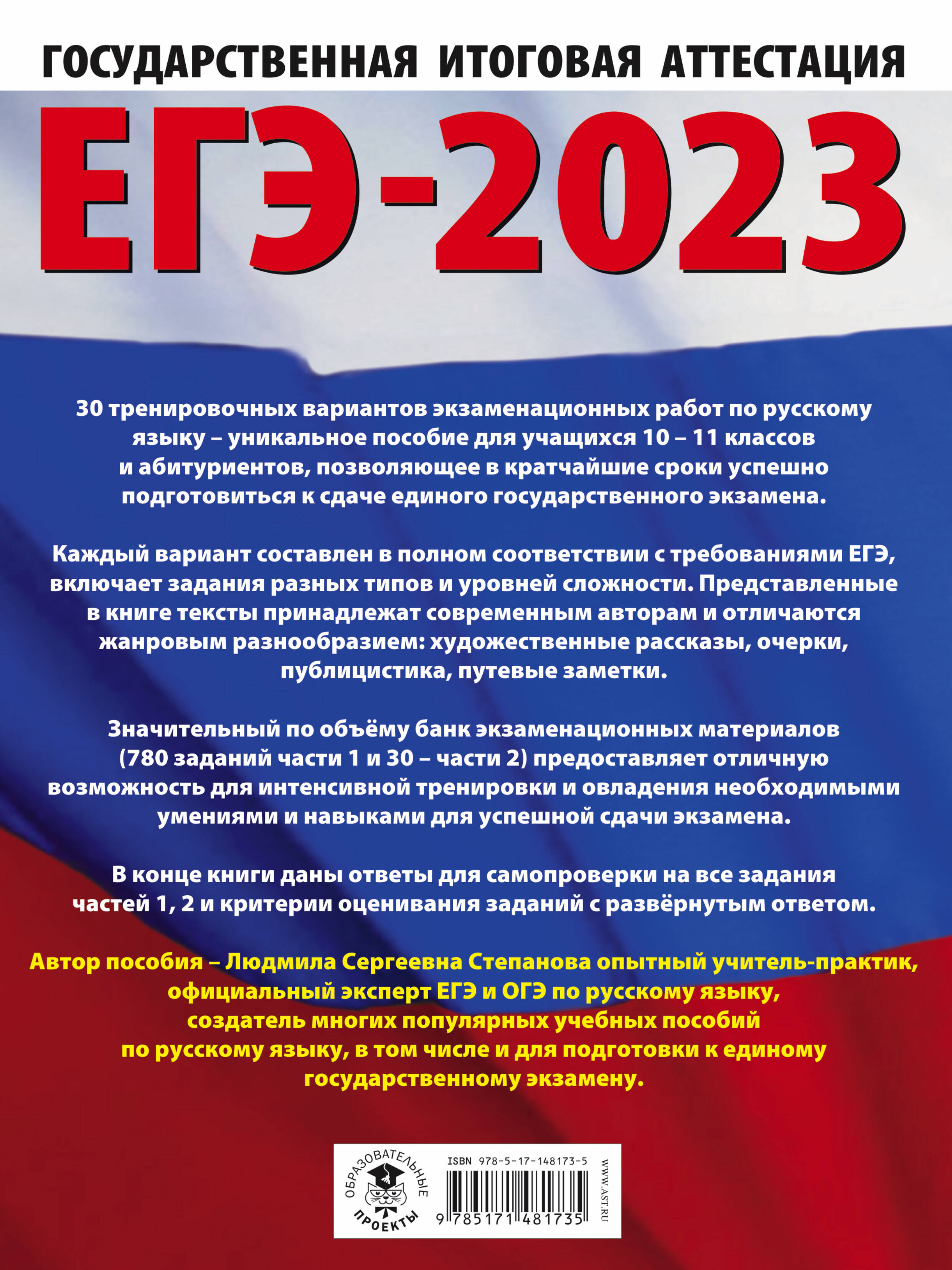 ЕГЭ-2023. Русский язык (60x84/8). 30 тренировочных вариантов проверочных работ для подготовки к единому государственному экзамену