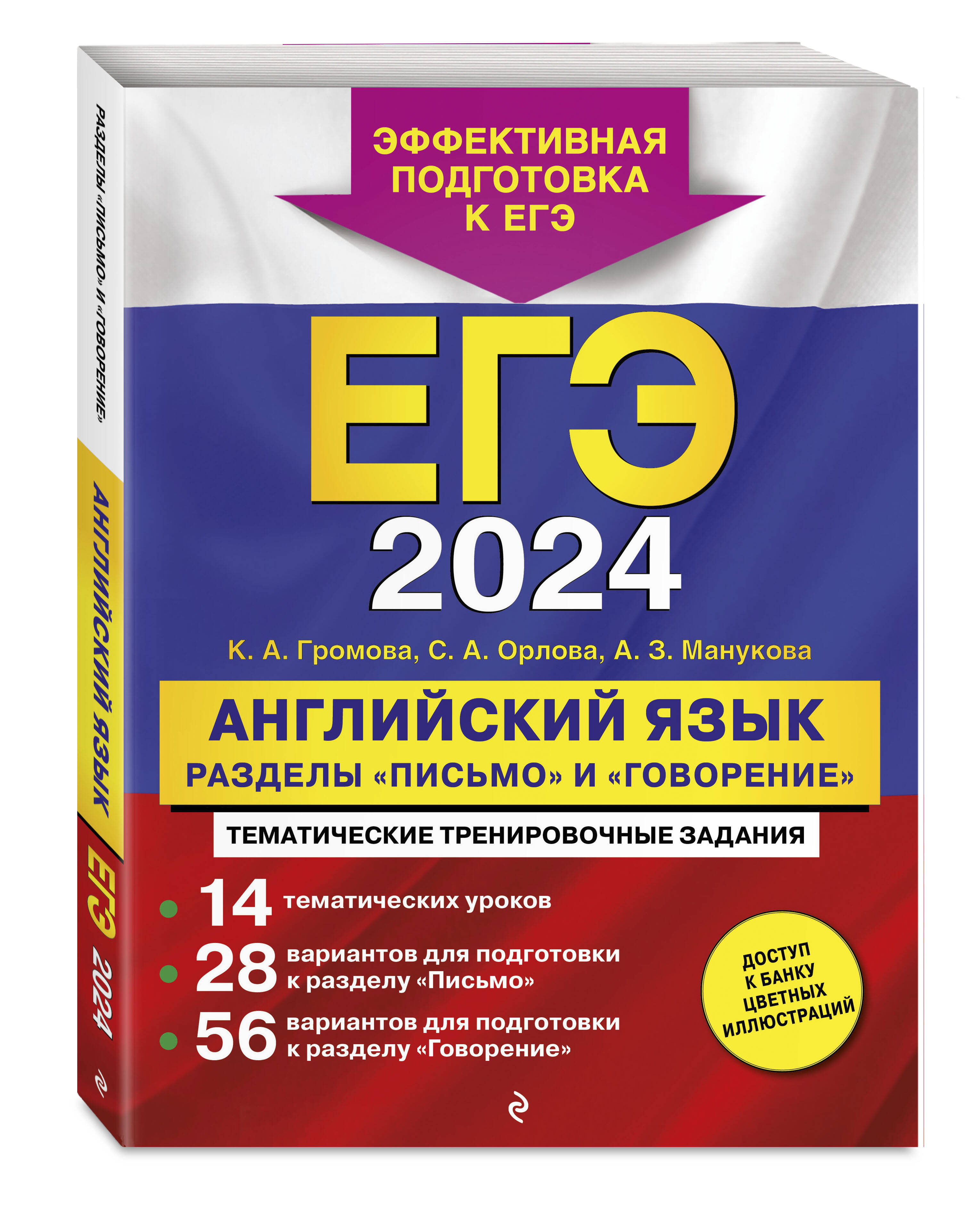 Издание предназначено для подготовки учащихся старших классов к ЕГЭ по английскому языку в 2024 году. В книге приводится уникальная авторская методика подготовки к самым сложным разделам ЕГЭ по английскому языку - «Письмо» («Письменная речь») и «Говорение» («Устная речь»): • комплекс упражнений, сгруппированных в 14 тематических уроков; • 28 тренировочных вариантов для подготовки к разделу «Письмо»; • 56 тренировочных вариантов для подготовки к устной части; • опорные фразы для выполнения заданий разделов «Письмо» и «Говорение»; • примеры выполнения заданий 37 и 38 письменной части и задания 4-й устной части; • шаблоны устного ответа на английском и русском языках. К пособию прилагается обширный банк цветных иллюстраций в электронном виде для выполнения заданий устной части, доступный по QR-коду. Книга будет полезна учителям английского языка, так как дает возможность эффективно организовать подготовку учащихся к ЕГЭ непосредственно на уроках, в процессе изучения учебного материала. Материалы пособия помогут учащимся приобрести практические навыки выполнения заданий из разделов «Письмо» («Письменная речь») и «Говорение» («Устная часть»), значительно увеличить лексический запас и качественно подготовиться к ЕГЭ по английскому языку.| Издательство | ООО "Издательство "Эксмо" |