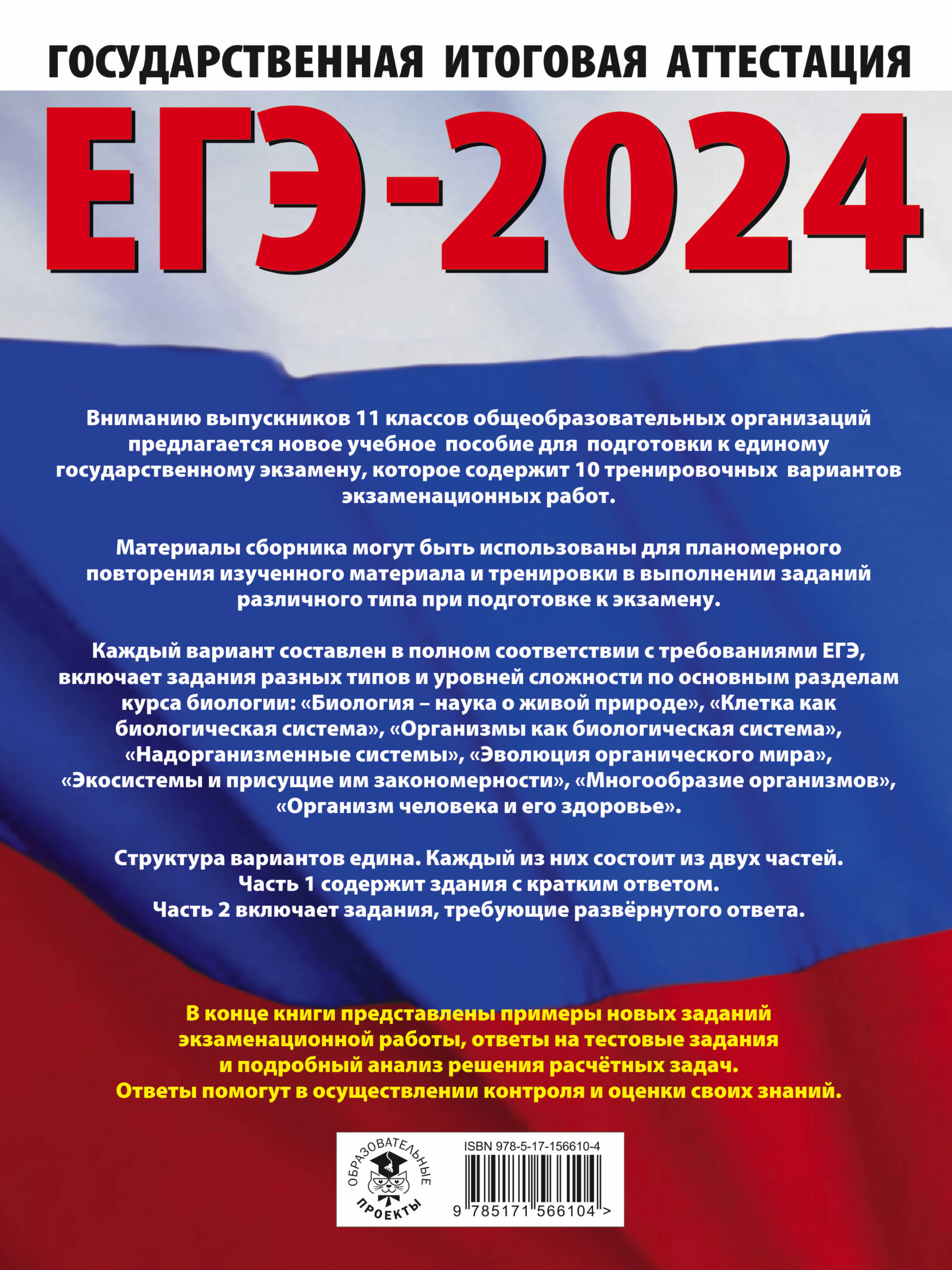 Аннотация: ЕГЭ-2024. Биология (60x84/8). 10 тренировочных вариантов экзаменационных работ для подготовки к единому государственному экзамену