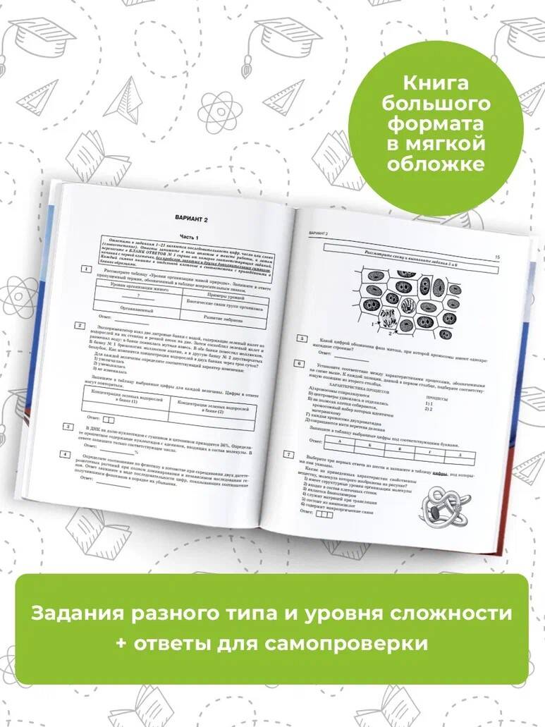 Вниманию выпускников 11 классов общеобразовательных организаций предлагается поcобие для подготовки к единому государственному экзамену, которое содержит 10 тренировочных вариантов экзаменационных работ. Материалы сборника могут быть использованы для планомерного повторения изученного материала и тренировки в выполнении заданий различного типа при подготовки к экзамену. Каждый вариант составлен в полном соответствии с требованиями ЕГЭ, включает задания разных типов и уровня сложности по основным разделам курса биологии: "Клетка как биологическая система", "Организмы как биологическая система", "Надорганизменные системы", "Эволюция органического мира", "Экосистемы и присущие им закономерности", "Многообразие организмов", "Организм человека и его здоровье". Структура вариантов едина. Каждый из них состоит из двух частей. Часть 1 содержит задания с кратким ответом. Часть 2 включает задания, требующие развёрнутого ответа. В конце книги представлены примеры новых заданий экзаменационной работы, ответы на тестовые задания и подробный анализ решения расчётных задач. Ответы помогут в осуществлении контроля и оценки своих знаний.