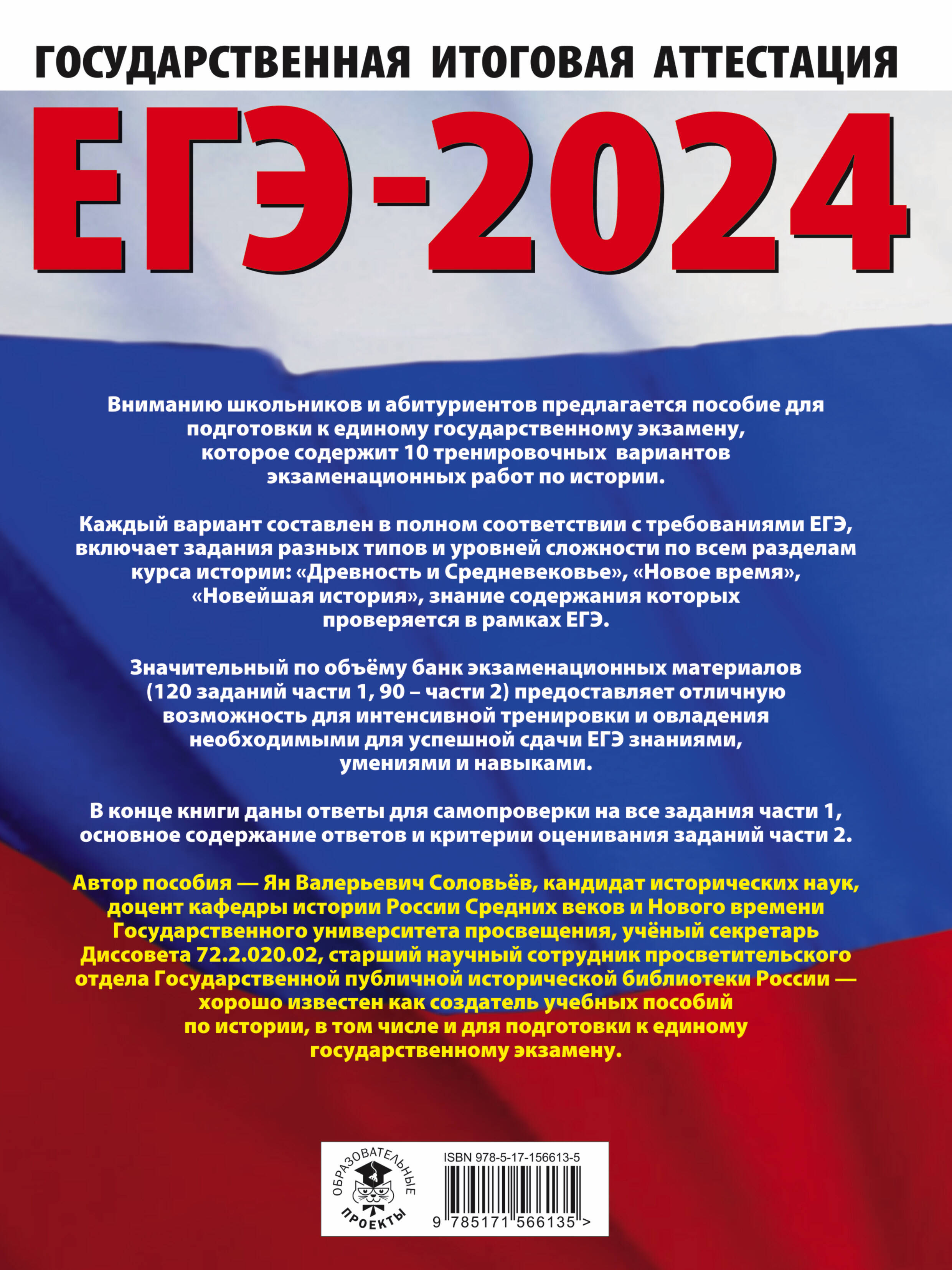 ЕГЭ-2024. История (60x84/8). 10 тренировочных вариантов экзаменационных работ для подготовки к единому государственному экзамену