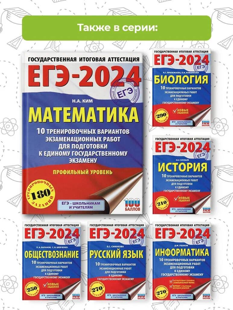 Аннотация: ЕГЭ-2024. Математика (60х84/8). 10 тренировочных вариантов экзаменационных работ для подготовки к единому государственному экзамену. Профильный уровень