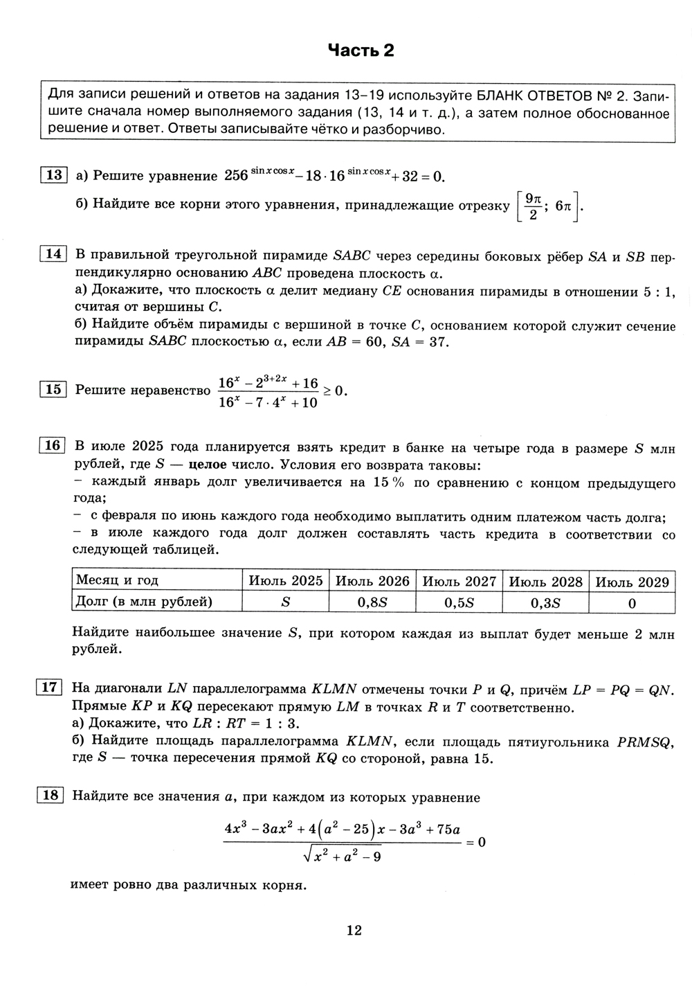 Авторы пособия - ведущие специалисты, принимающие непосредственное участие в разработке методических материалов для подготовки к выполнению контрольных измерительных материалов ЕГЭ. Книга содержит 37 типовых вариантов экзаменационных заданий по математике, составленных с учетом всех особенностей и требований Единого государственного экзамена по математике профильного уровня 2024 года. Назначение пособия - предоставить читателям информацию о структуре и содержании контрольных измерительных материалов по математике профильного уровня, степени трудности заданий. В сборнике даны ответы на все варианты тестов, приводятся решения всех заданий части 2 двух вариантов. Кроме того, приведены образцы бланков, используемых на ЕГЭ для записи ответов и решений. Пособие может быть использовано учителями для подготовки учащихся к экзамену по математике в форме ЕГЭ, а также старшеклассниками - для самоподготовки и самоконтроля.