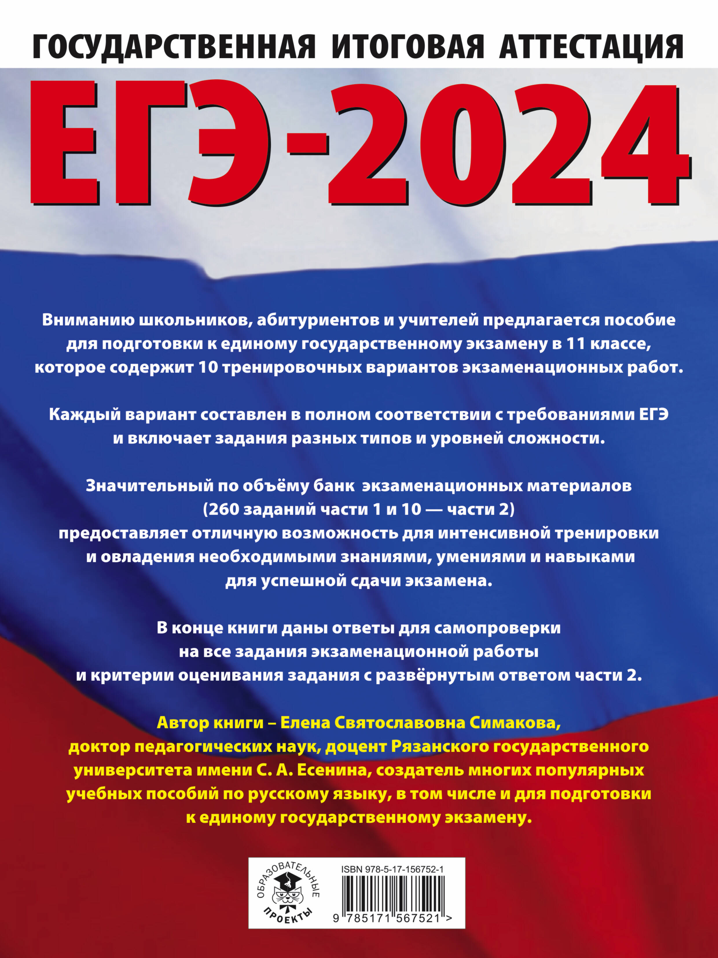 ЕГЭ-2024. Русский язык (60х84/8). 10 тренировочных вариантов экзаменационных работ для подготовки к единому государственному экзамену