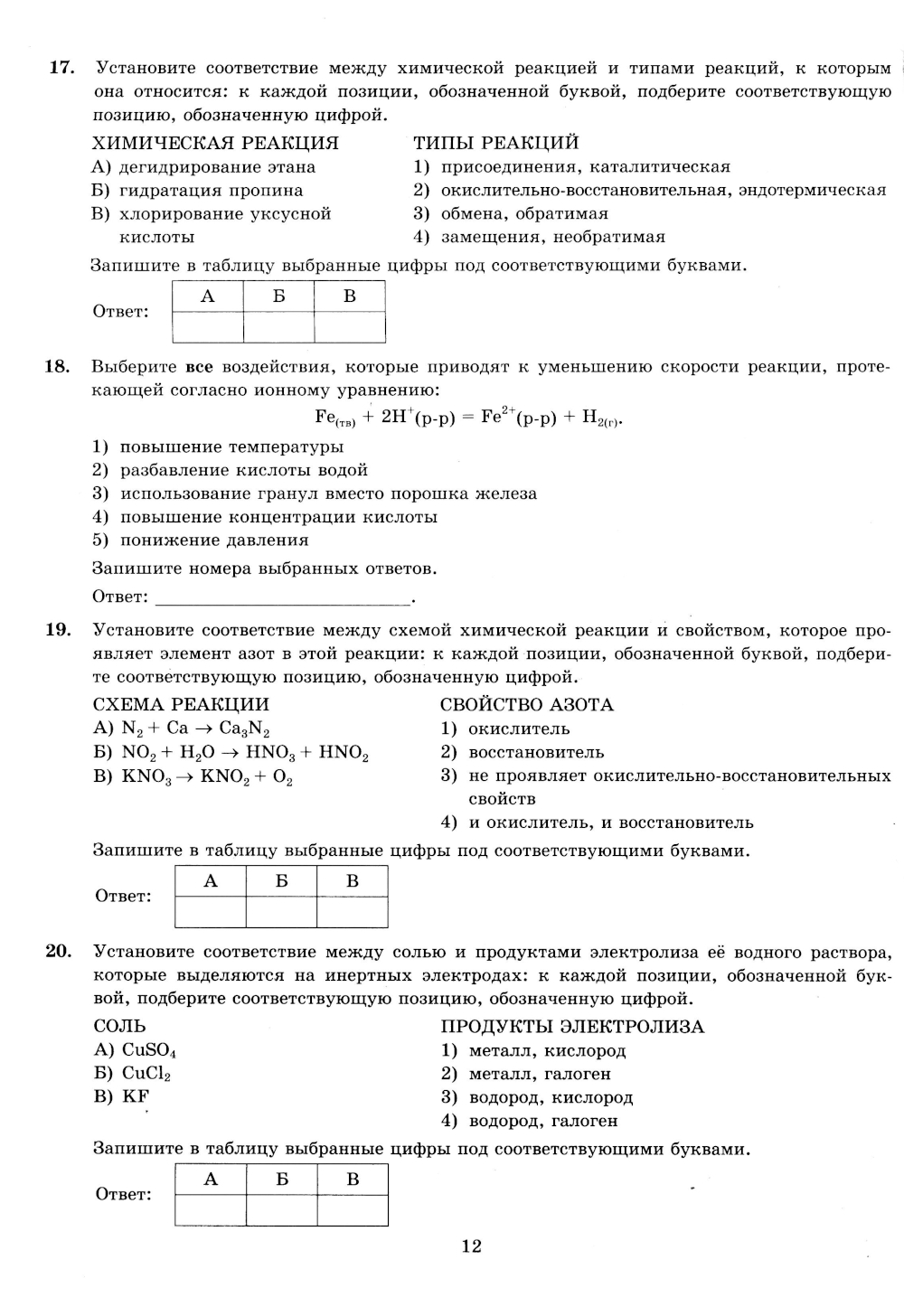 Пособие прошло научно-методическую оценку ФГБНУ «ФИПИ». Пособие содержит 30 типовых вариантов экзаменационных заданий Единого государственного экзамена по химии. Назначение пособия - предоставить возможность обучающимся отработать навыки выполнения заданий, аналогичных заданиям, представленным в демонстрационной версии ЕГЭ по химии. Пособие адресовано учителям для подготовки учащихся к Единому государственному экзамену, а учащимся-старшеклассникам - для самоподготовки и самоконтроля.| Издательство | Экзамен |