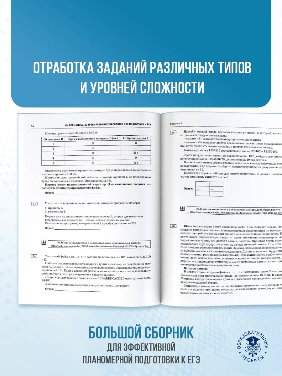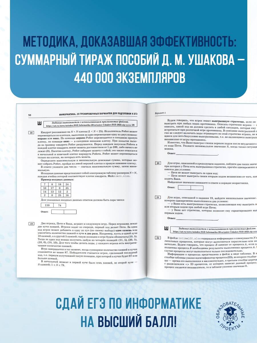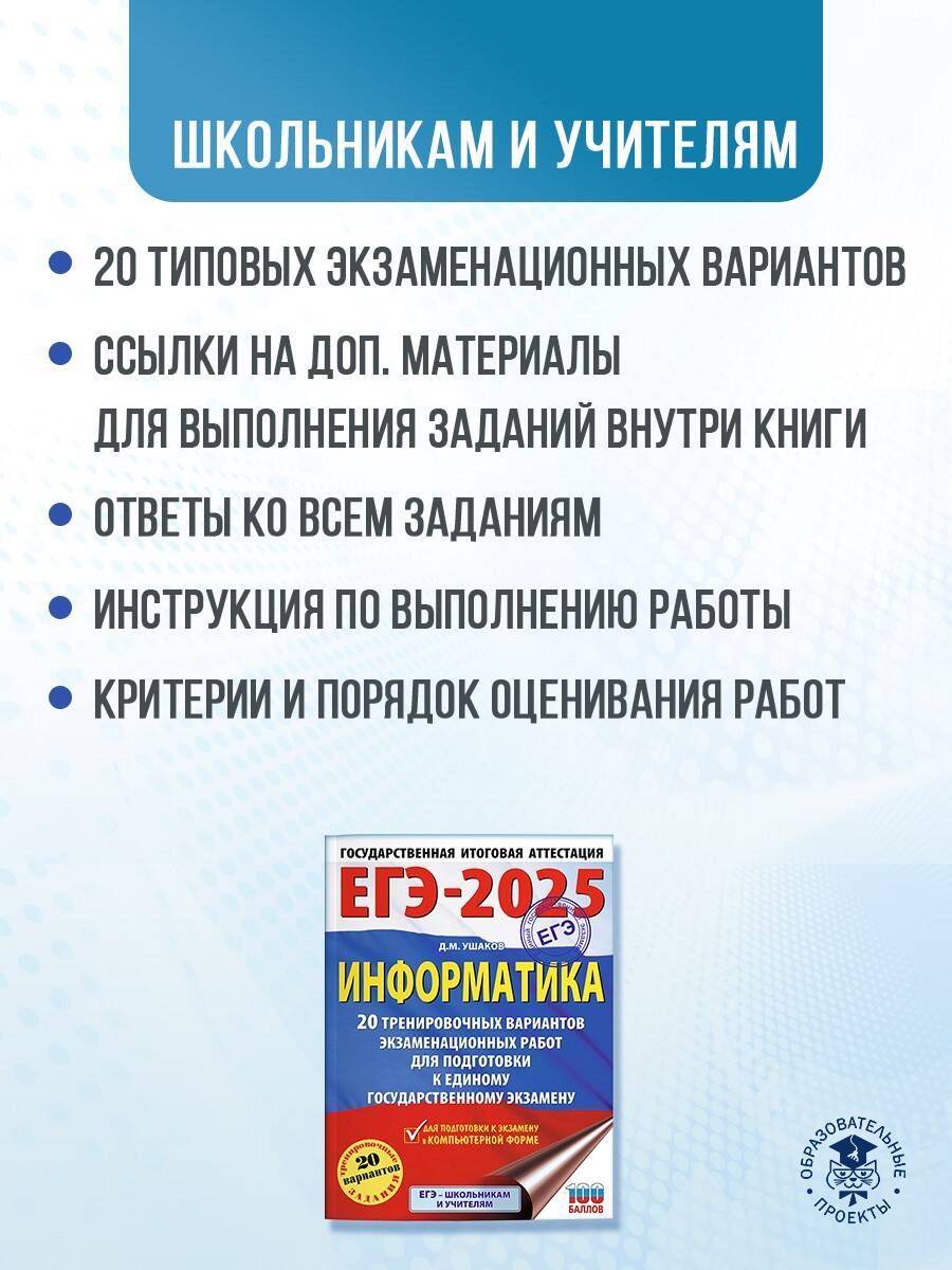 Аннотация: ЕГЭ-2025. Информатика. 20 тренировочных вариантов экзаменационных работ для подготовки к единому государственному экзамену
