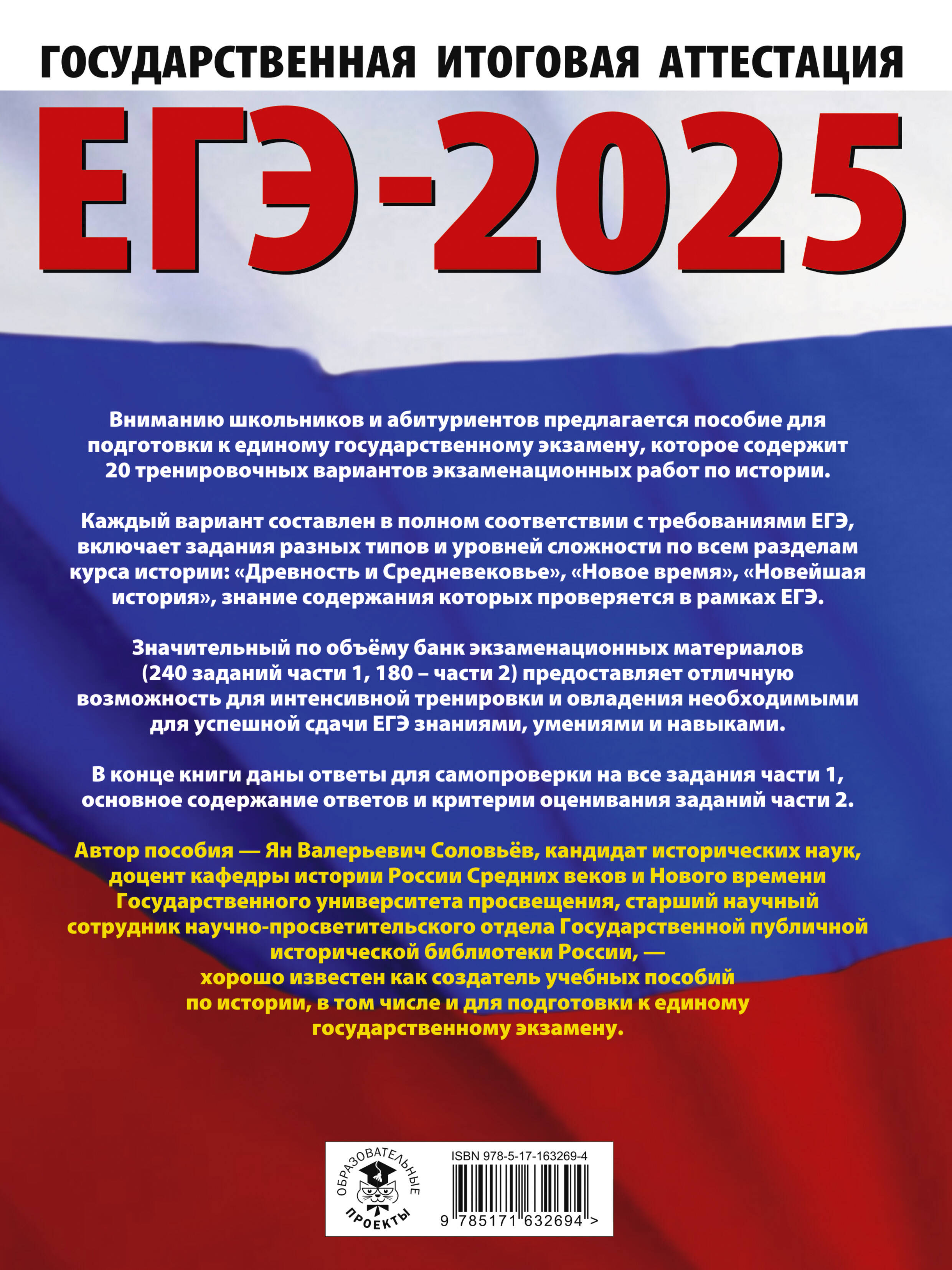 ЕГЭ-2025. История. 20 тренировочных вариантов экзаменационных работ для подготовки к ЕГЭ