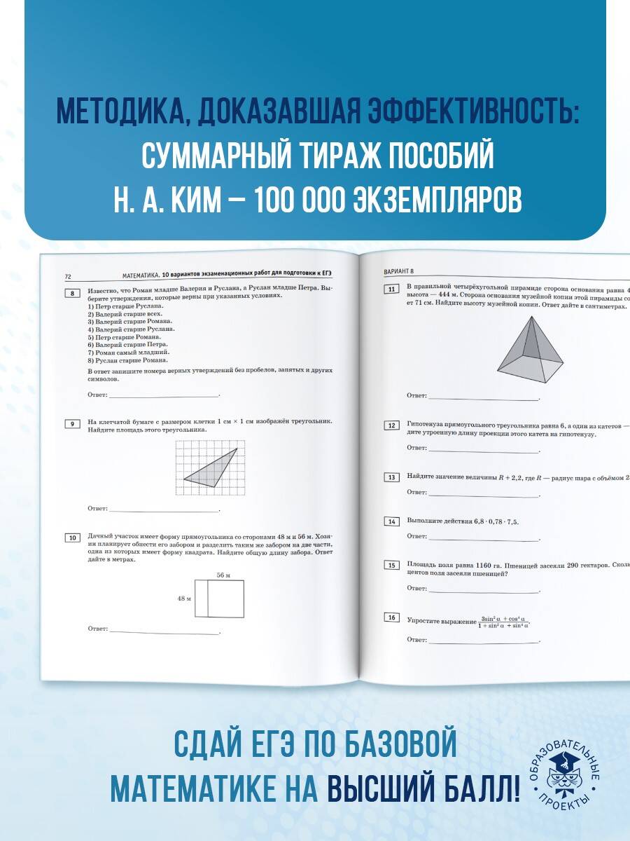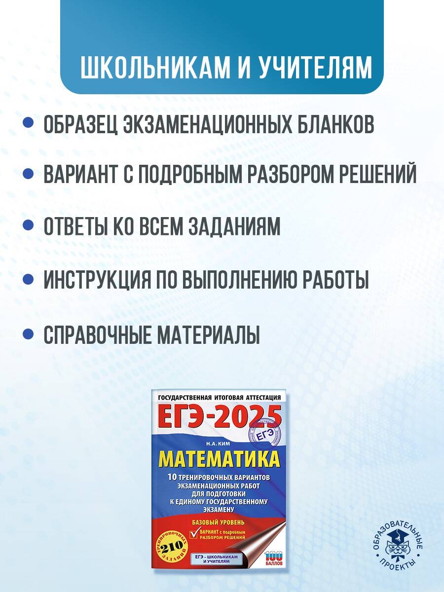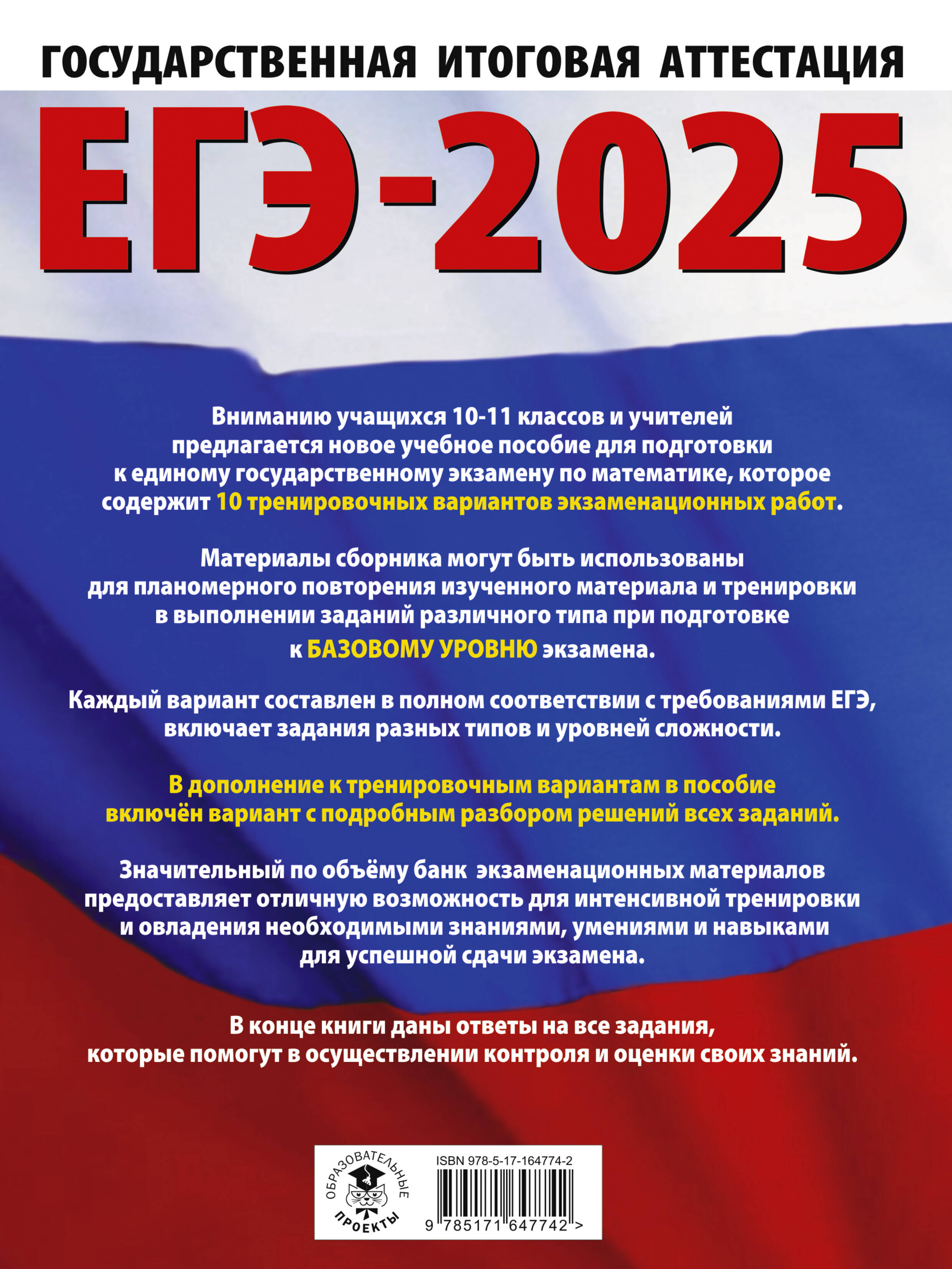 ЕГЭ-2025. Математика (60х84/8). 10 тренировочных вариантов экзаменационных работ для подготовки к единому государственному экзамену. Базовый уровень