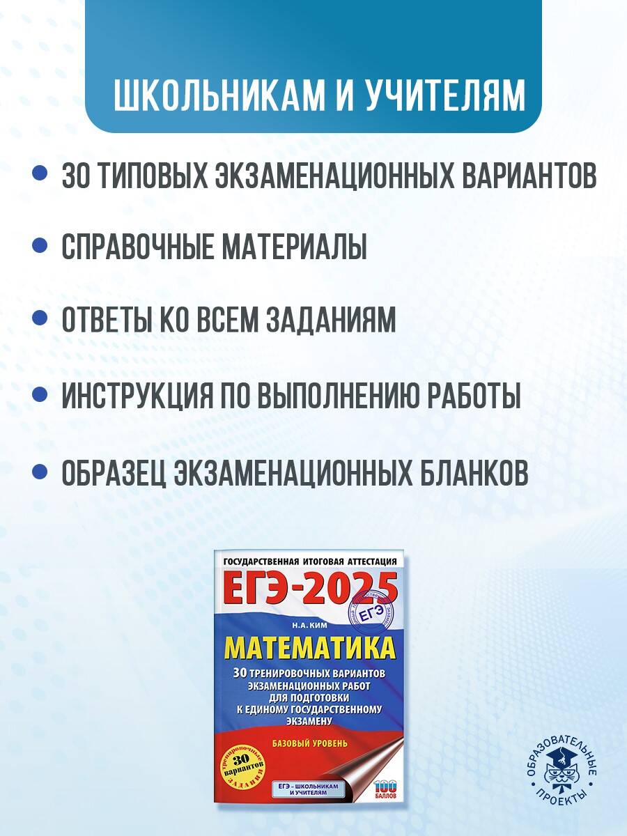 ЕГЭ-2025. Математика (60х84/8). 30 тренировочных вариантов экзаменационных работ для подготовки к единому государственному экзамену. Базовый уровень