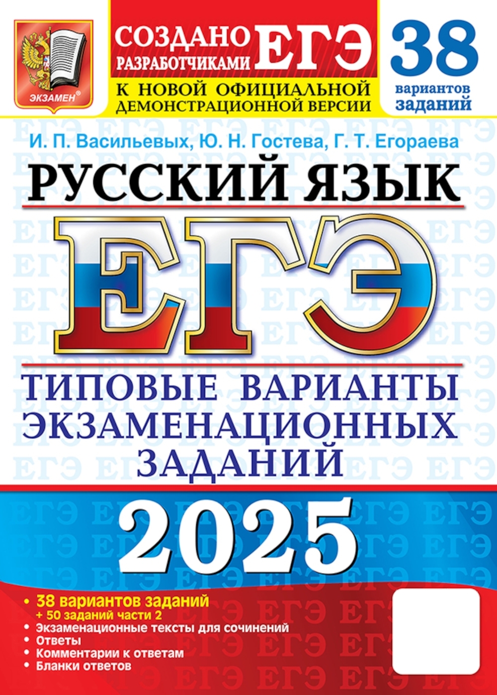 Аннотация: ЕГЭ 2025. Русский язык. 38 вариантов + 50 заданий части 2. Типовые варианты экзаменационных заданий