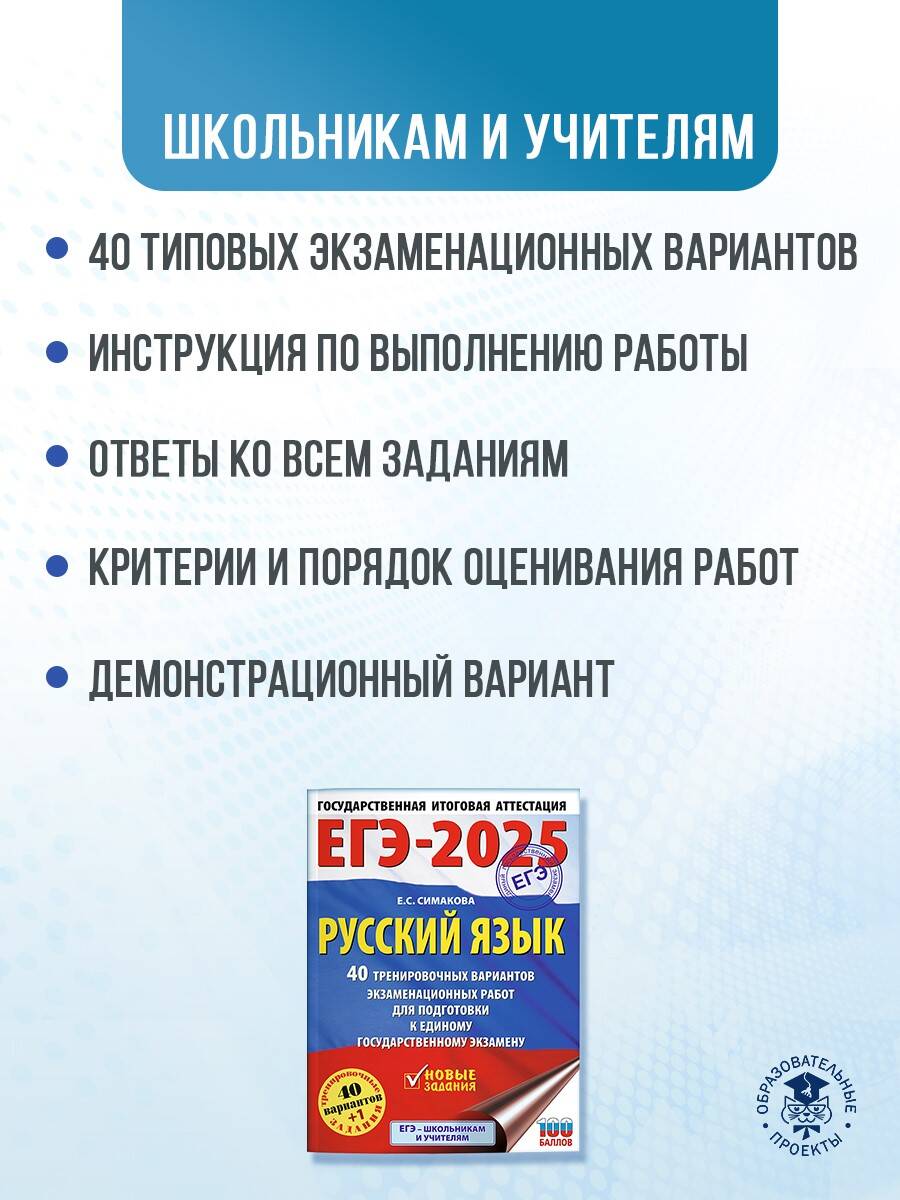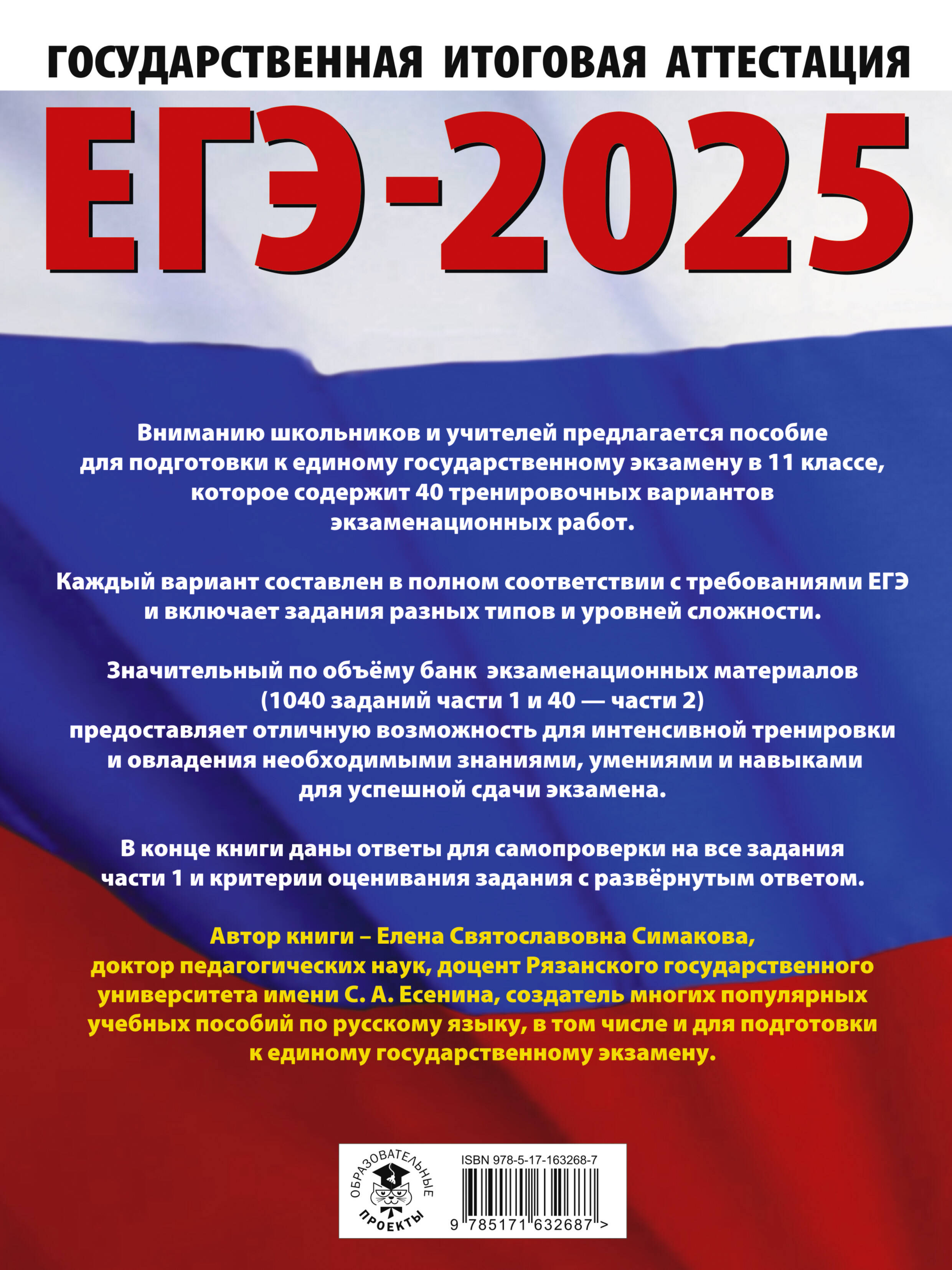 ЕГЭ-2025. Русский язык. 40 тренировочных вариантов экзаменационных работ для подготовки к ЕГЭ