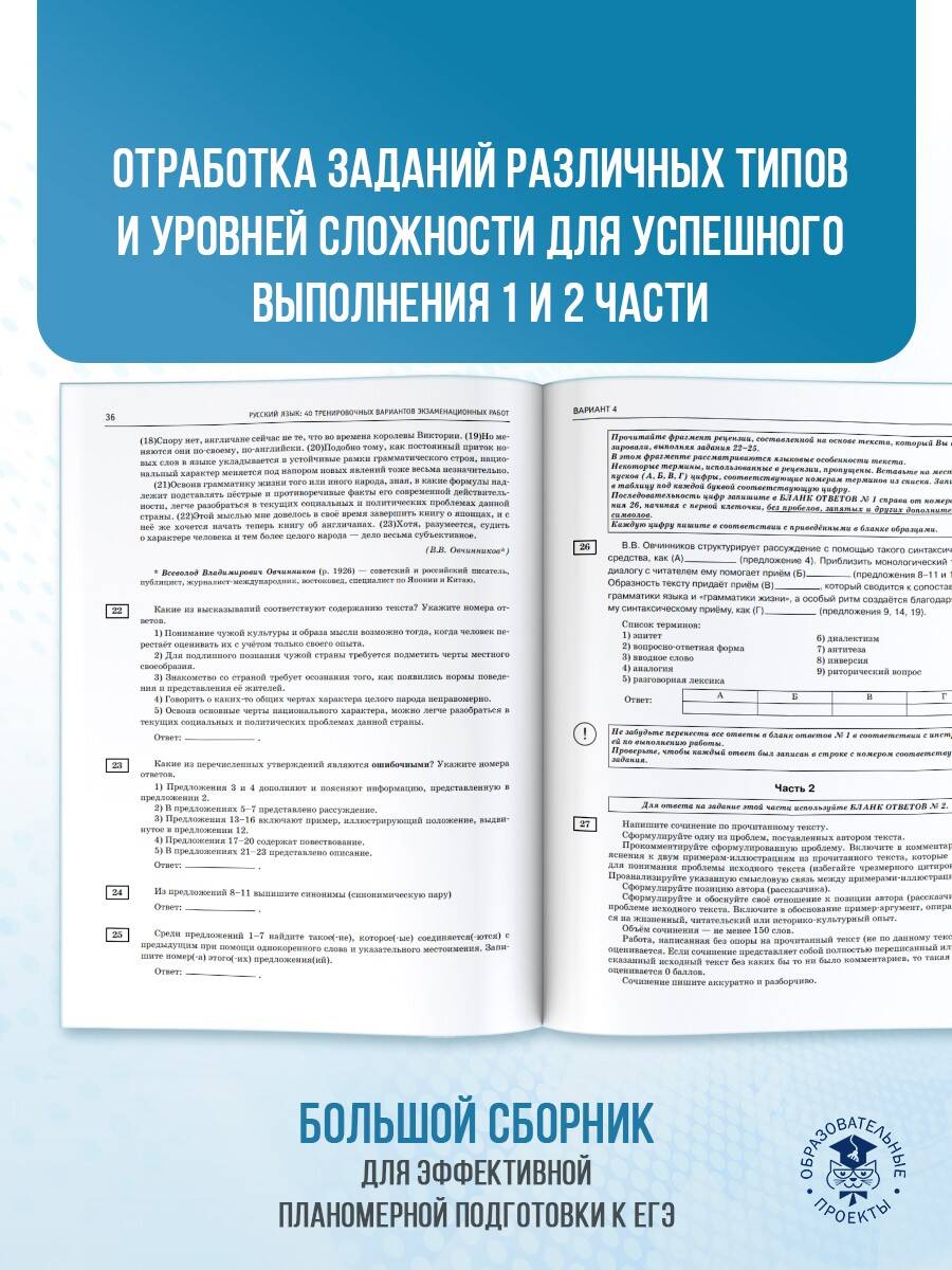 Аннотация: ЕГЭ-2025. Русский язык. 40 тренировочных вариантов экзаменационных работ для подготовки к ЕГЭ