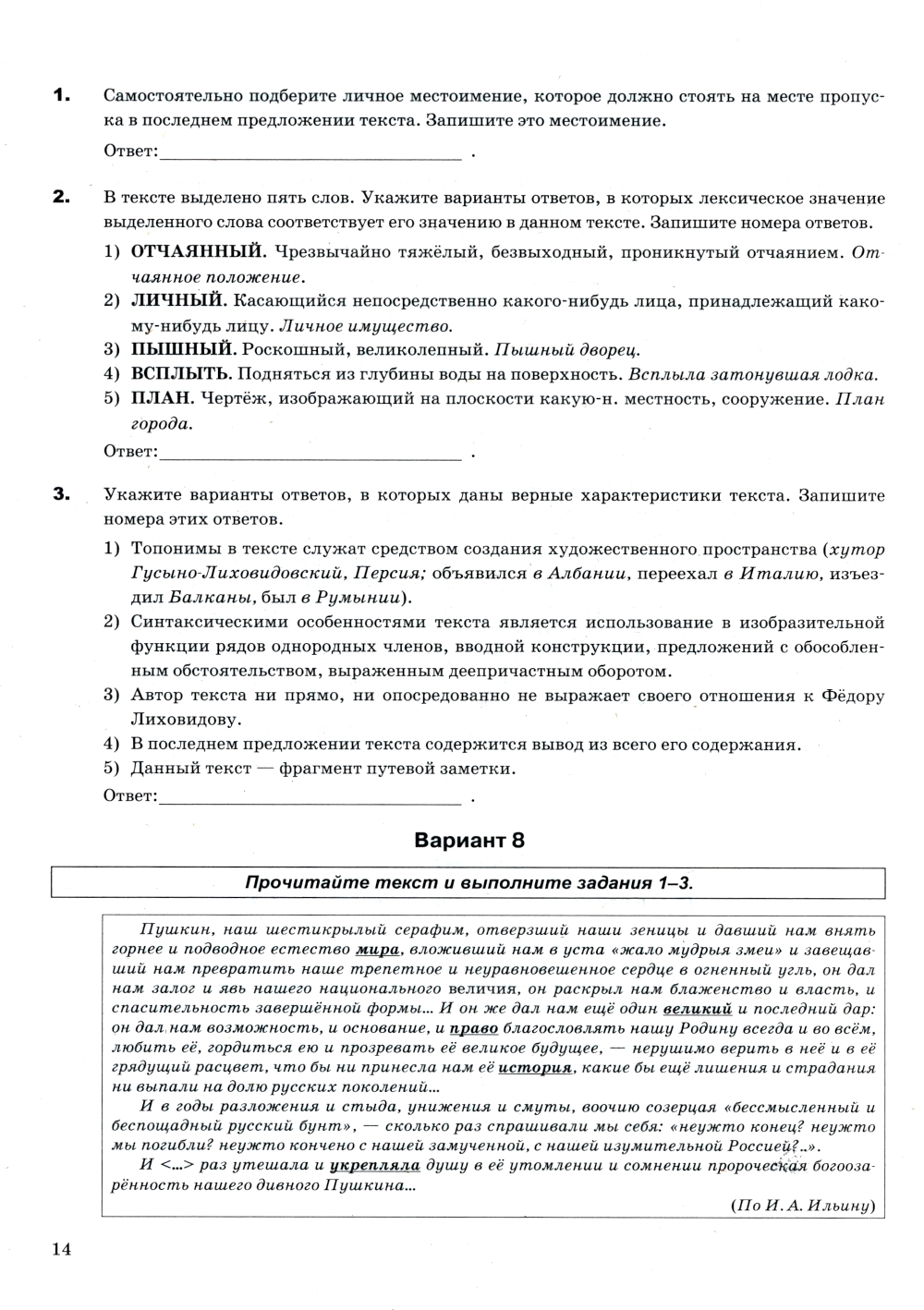 Предлагаемое пособие содержит сведения о структуре Единого государственного экзамена, инструк-цию по выполнению, проверке и оценке работы, а также задания, максимально приближенные к реаль-ным экзаменационным заданиям, но распределенные по тематическим блокам. Это даст возможность: - поэтапно отработать ту или иную тему, - активизировать навыки грамотного письма, - выявить пробелы и устранить их, - обобщить и систематизировать изученное. Кроме того, в пособии помещен материал, разъясняющий ряд заданий, которые отмечены в «Методи-ческих рекомендациях, подготовленных на основе анализа типичных ошибок участников ЕГЭ» как набравшие самое низкое количество баллов. Издание рассчитано на учителей, методистов и старшеклассников.| Издательство | Экзамен |