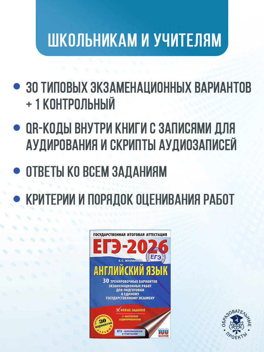 ЕГЭ-2026. Английский язык. 30 тренировочных вариантов экзаменационных работ для подготовки к единому государственному экзамену