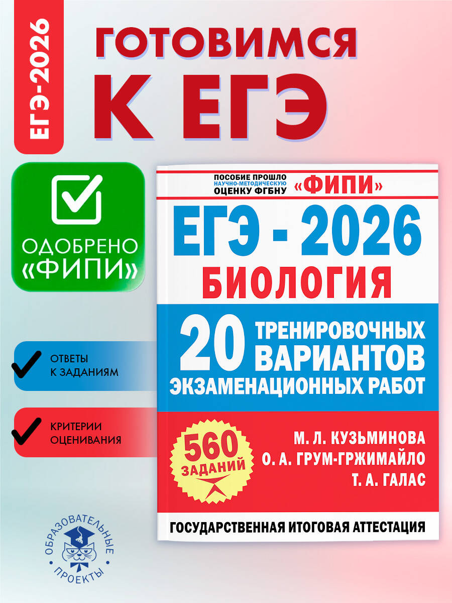 ЕГЭ-2026. Биология. 20 тренировочных вариантов экзаменационных работ для подготовки к ЕГЭ
