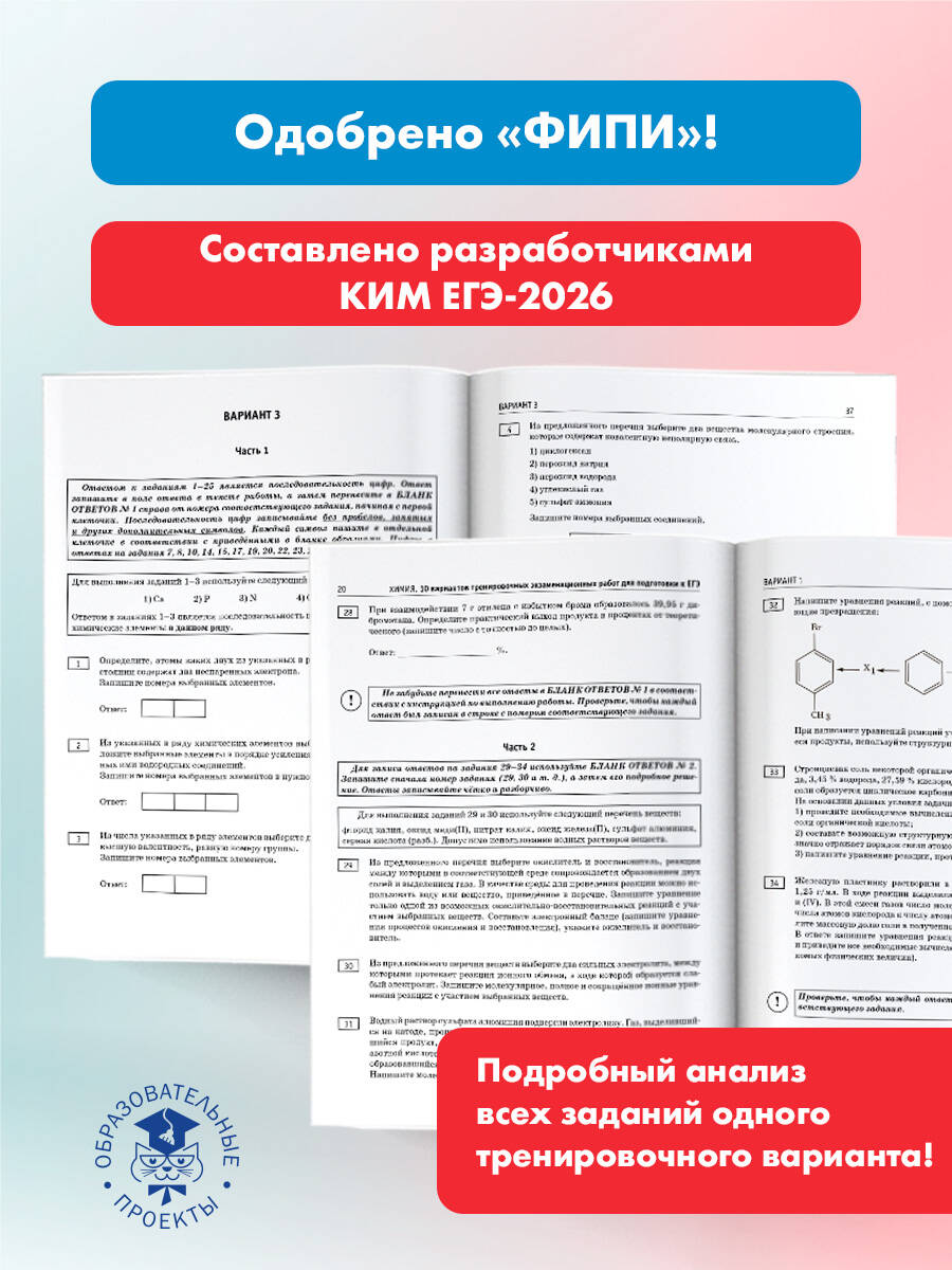 Аннотация: ЕГЭ-2026. Химия. 10 тренировочных вариантов экзаменационных работ