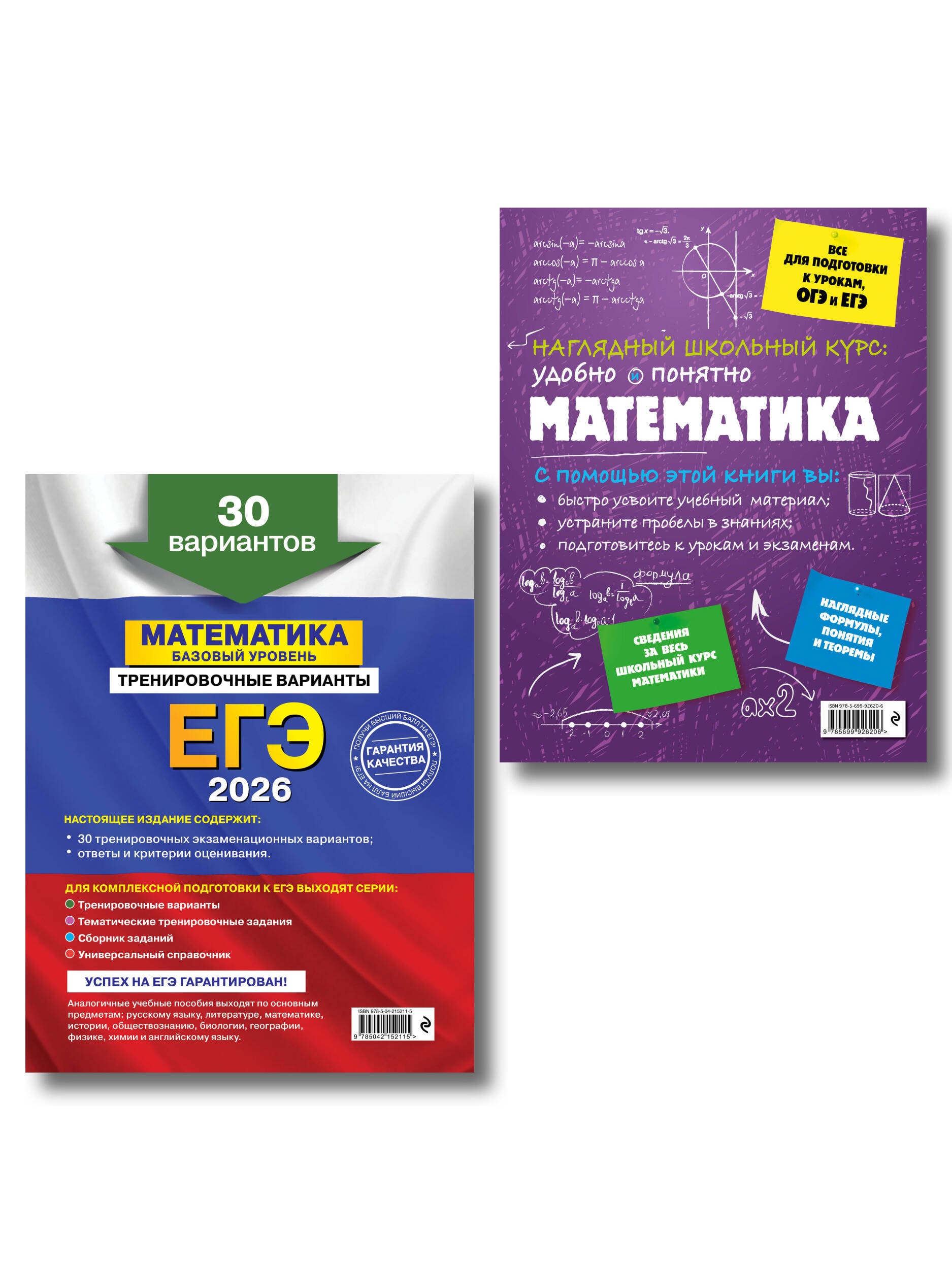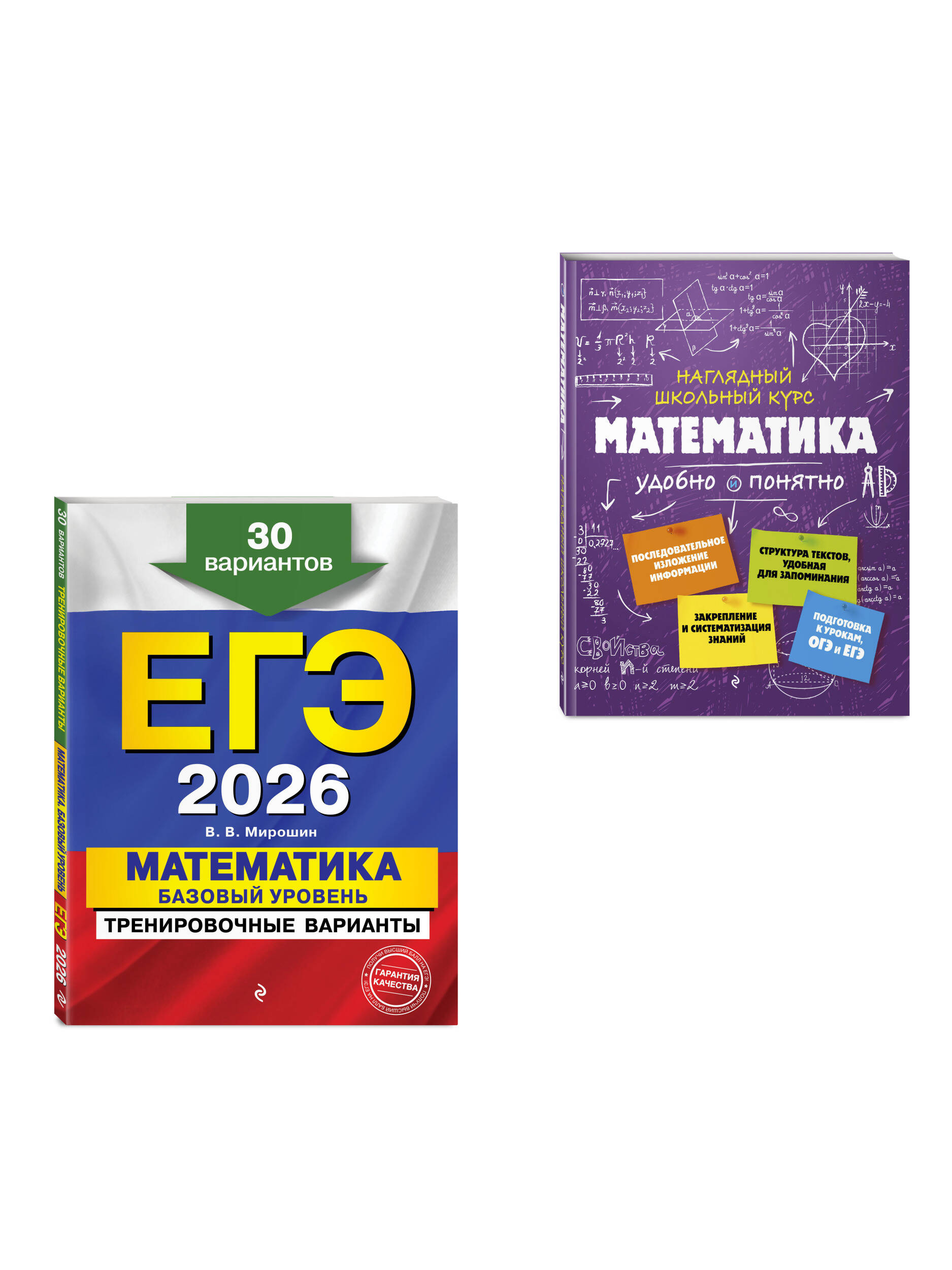 В комплект вошли книги: «ЕГЭ-2026. Математика. Базовый уровень. Тренировочные варианты. 30 вариантов» и «Математика» из серии «Наглядный школьный курс: удобно и понятно», адресованные выпускникам старшей школы для подготовки к ЕГЭ по базовой математике. В пособии ЕГЭ-2026 представлены задания разных типов по всем темам ЕГЭ с ответами и критериями оценивания. Задания максимально приближены к реальным, используемым на экзамене. В справочнике «Математика» в наглядных таблицах и удобной для запоминания форме приводятся основные сведения за весь школьный курс математики. Этот комплект пособий идеально подходит для тех, кто хочет подготовиться к ЕГЭ быстро и качественно. Типовые задания помогут отработать все экзаменационные темы, а схемы и таблицы облегчат запоминание информации. С таким сочетанием теории и практики вы не только усовершенствуете знания по математике, но и подойдете к экзамену с полной готовностью!| Издательство | ООО "Издательство "Эксмо" |