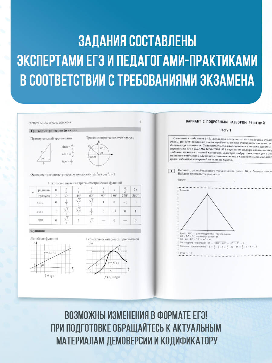 Данное пособие предназначено для учащихся 10-11 классов и абитуриентов. Оно позволяет в кратчайшие сроки успешно подготовиться к сдаче единого государственного экзамена по математике профильного уровня. Пособие содержит 10 тренировочных вариантов. Варианты составлены в полном соответствии с требованиями ЕГЭ, включают задания разных типов и уровней сложности. Особенностью данного сборника является вариант с подробным разбором каждого задания. Представленные алгоритмы будут полезны при проверке и оценке своих навыков и умений в решении типовых экзаменационных заданий. В конце каждого варианта размещены образцы экзаменационных бланков для записи ответов. Ответы на все задания, размещенные в пособии, помогут в осуществлении контроля и оценки своих знаний.| Издательство | Издательство "АСТ" |