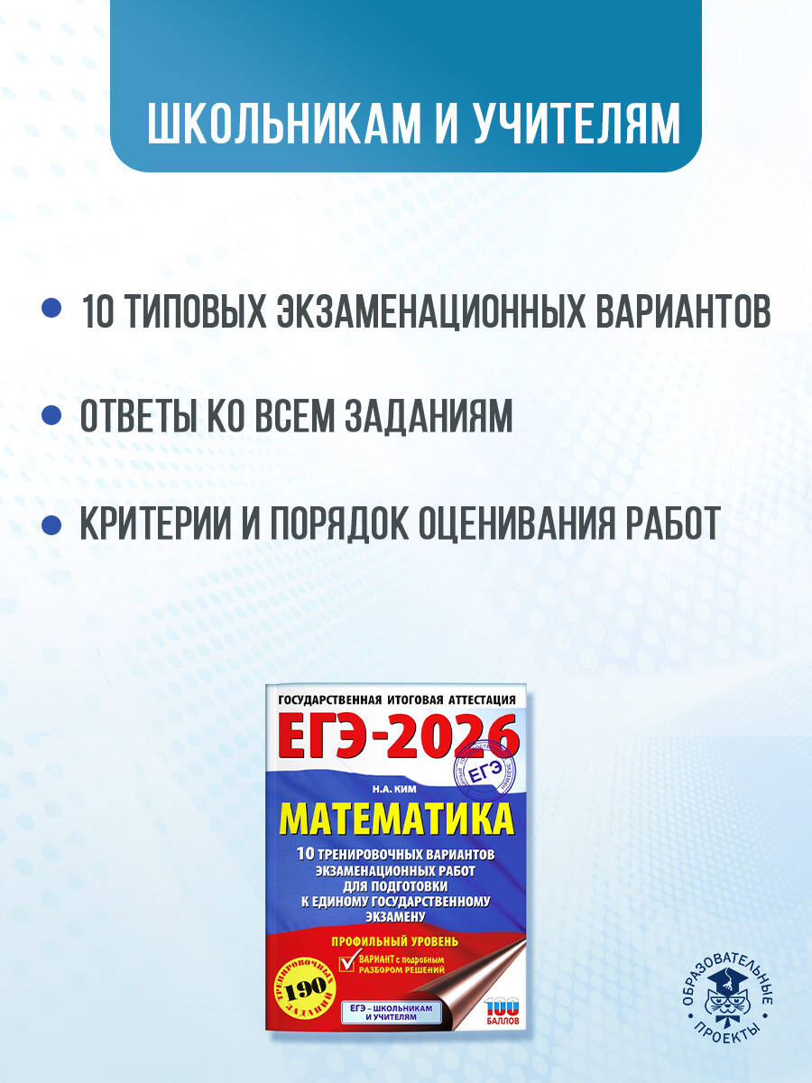 Аннотация: ЕГЭ-2026. Математика. 10 тренировочных вариантов экзаменационных работ для подготовки к единому государственному экзамену. Профильный уровень