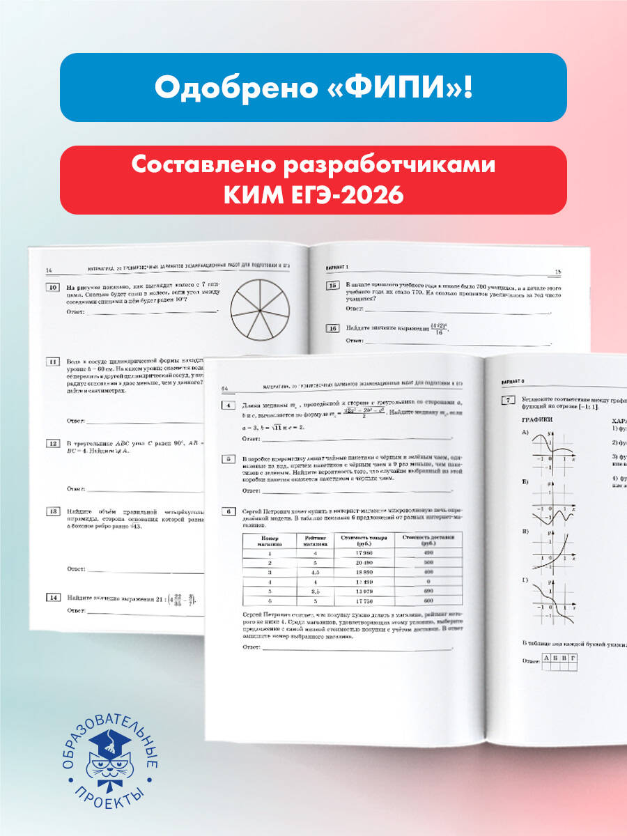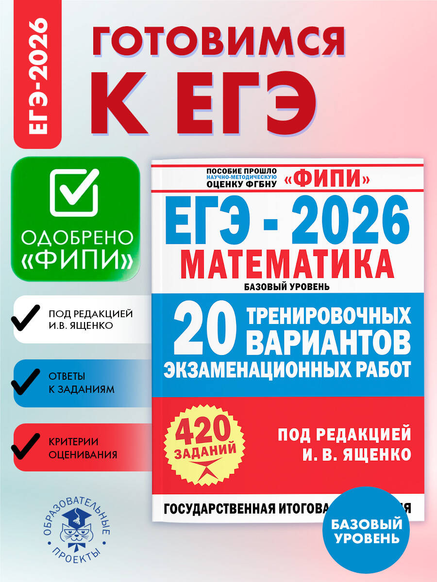 ЕГЭ-2026. Математика. 20 тренировочных вариантов экзаменационных работ для подготовки к ЕГЭ. Базовый уровень