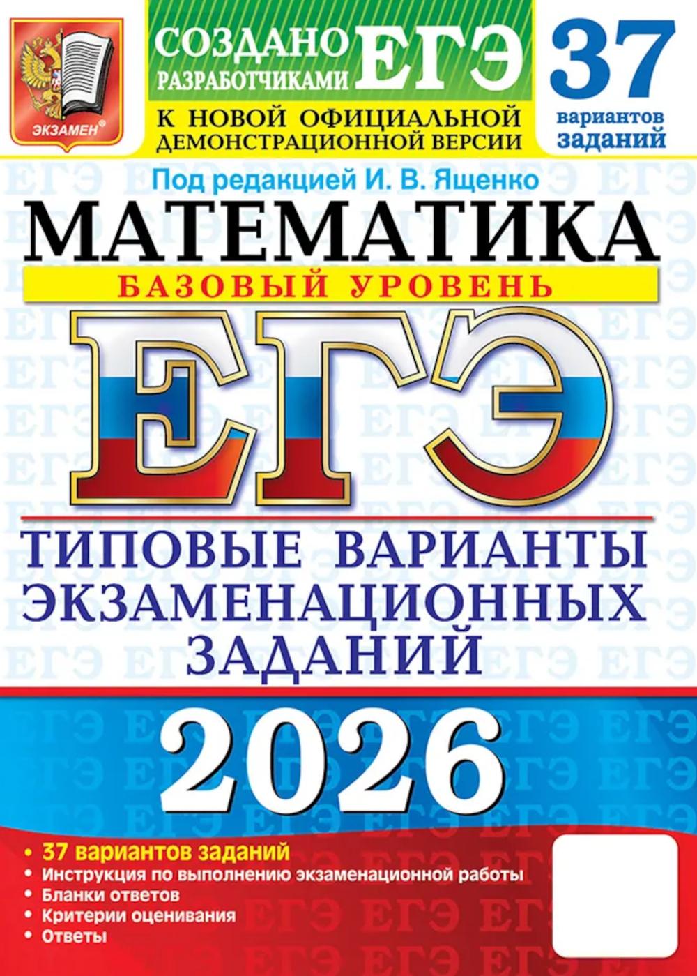 Аннотация: ЕГЭ 2026. Математика. Базовый уровень. 37 вариантов. Типовые варианты экзаменационных заданий