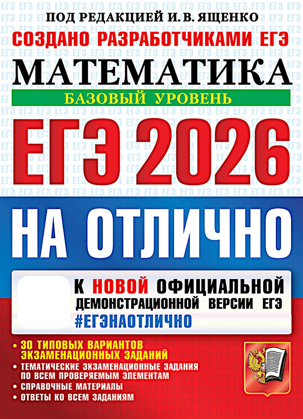 Предлагаемое пособие необходимо выпускникам для подготовки к сдаче Единого государственного экзамена по математике базового уровня в 2026 году на отличный результат. Пособие содержит тематические экзаменационные задания по всем проверяемым элементам содержания Единого государственного экзамена по математике базового уровня, 30 типовых вариантов экзаменационных заданий 2026 года, инструкцию по выполнению работы, справочные материалы, бланки ответов и ответы ко всем заданиям. Тематические экзаменационные задания помогут закрепить изученный материал, дадут возможность отработать как все темы в целом, так и только те, которые покажутся сложными. Выполнение типовых вариантов экзаменационных заданий за установленное время позволит приблизить ситуацию к экзаменационной.| Издательство | Экзамен |