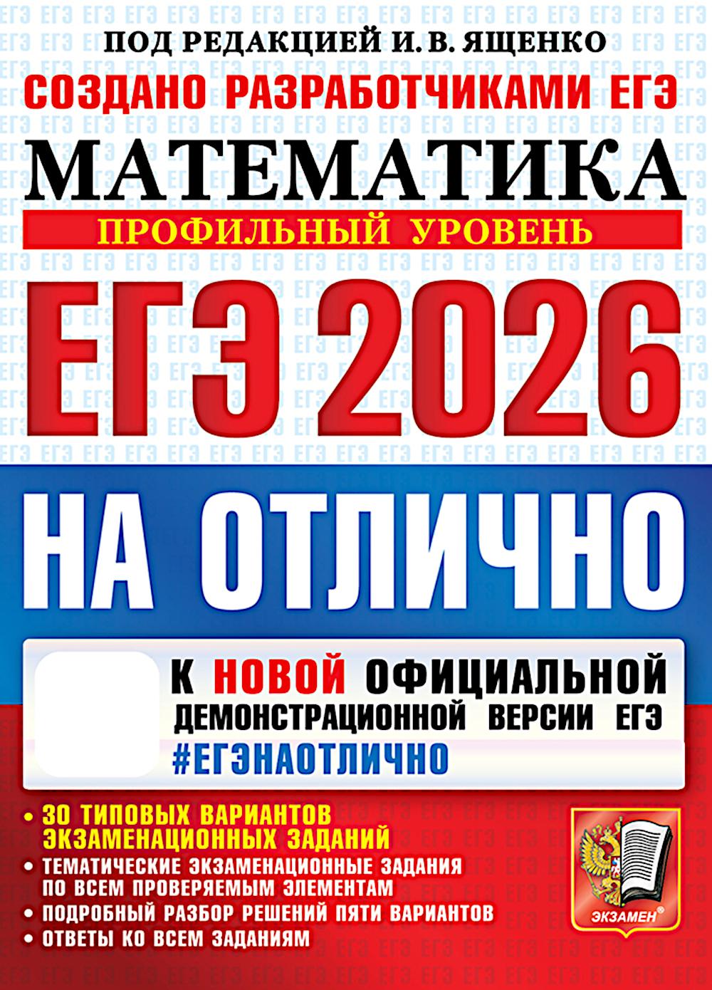 Предлагаемое пособие необходимо старшеклассникам для подготовки к сдаче Единого государственного экзамена по математике профильного уровня в 2026 году на отличный результат. Пособие содержит тематические экзаменационные задания по всем проверяемым элементам содержания Единого государственного экзамена по математике профильного уровня, 30 типовых вариантов экзаменационных заданий 2026 года, подробный разбор решений пяти вариантов, инструкцию по выполнению работы, бланки ответов и ответы ко всем заданиям. Тематические экзаменационные задания помогут закрепить изученный материал, дадут возможность отработать как все темы в целом, так и только те, которые покажутся сложными. Выполнение типовых вариантов экзаменационных заданий за установленное время позволит приблизить ситуацию к экзаменационной.| Издательство | Экзамен |