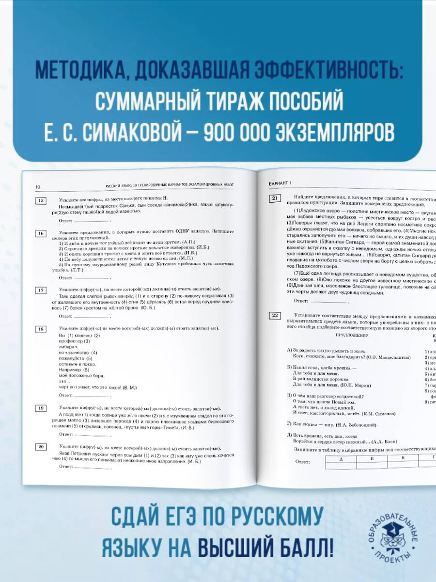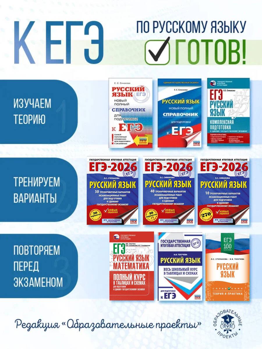ЕГЭ-2026. Русский язык. 10 тренировочных вариантов экзаменационных работ для подготовки к ЕГЭ