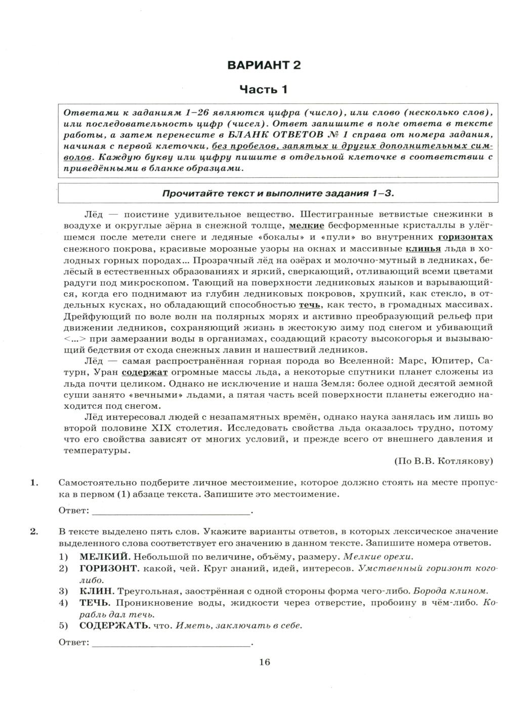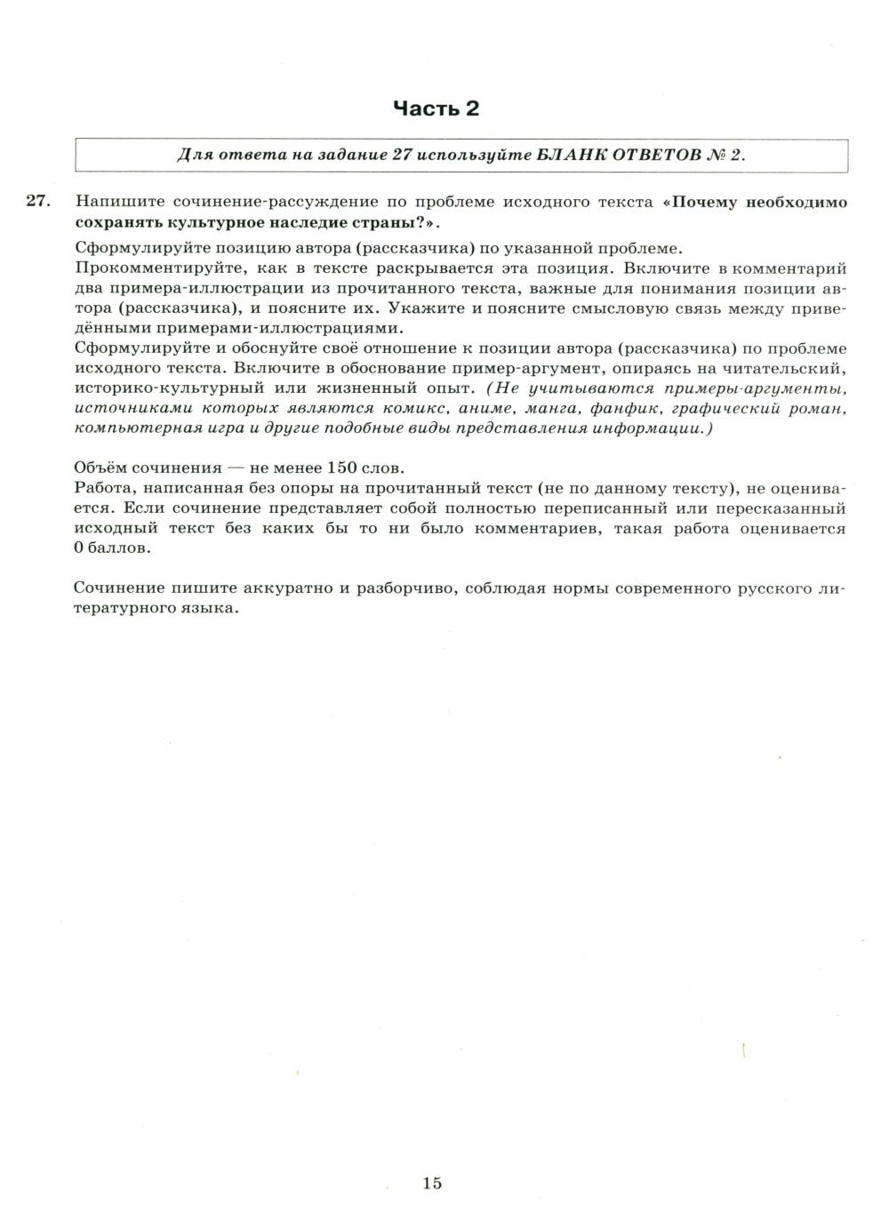 ЕГЭ 2026. Русский язык. 15 вариантов. Типовые варианты экзаменационных заданий