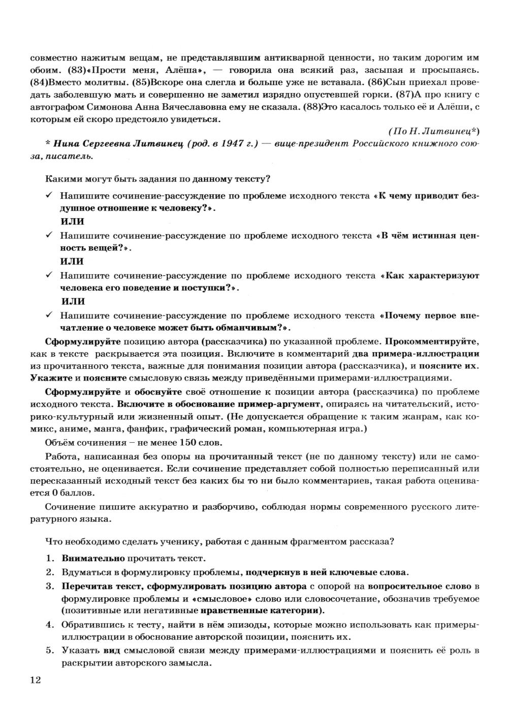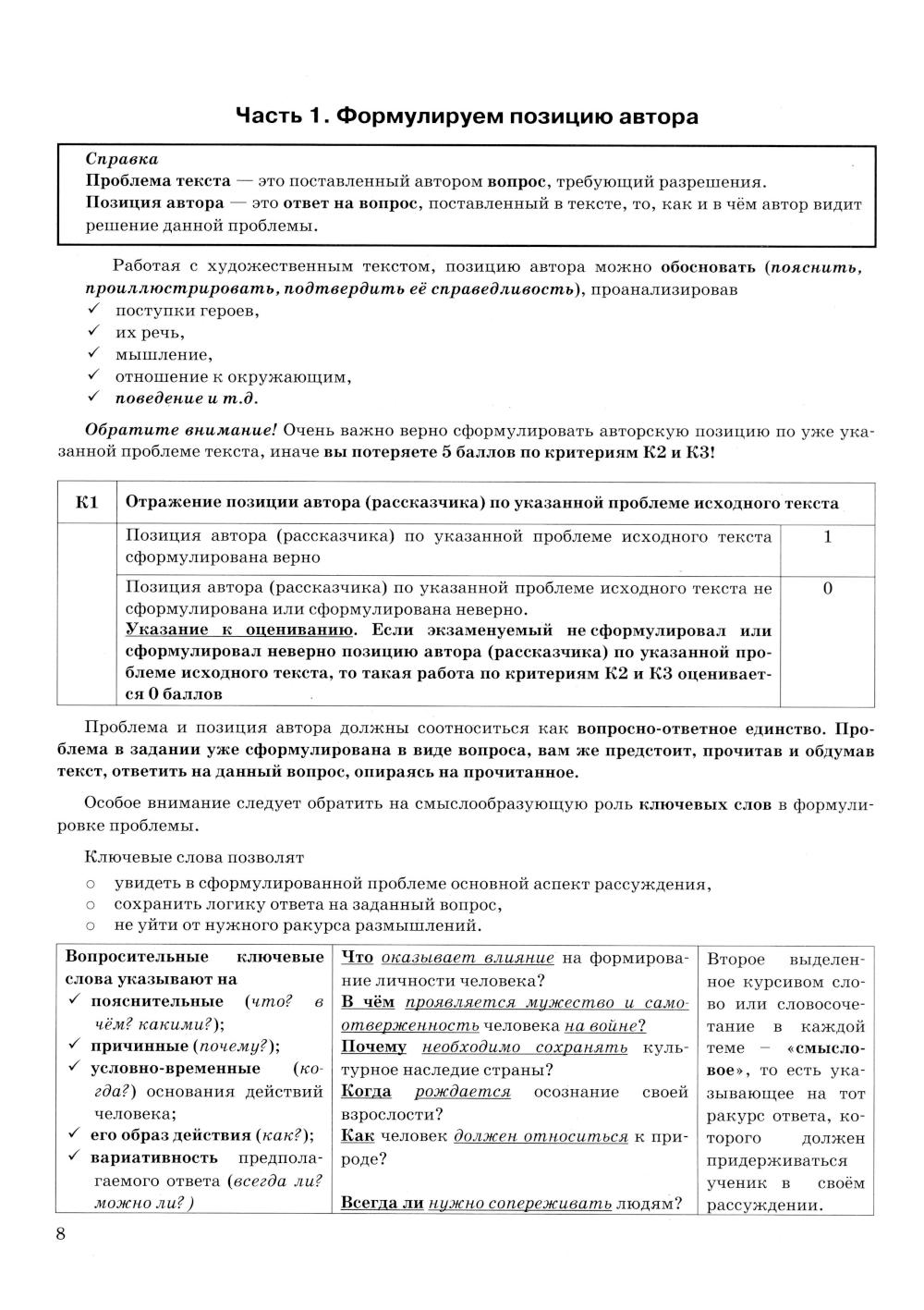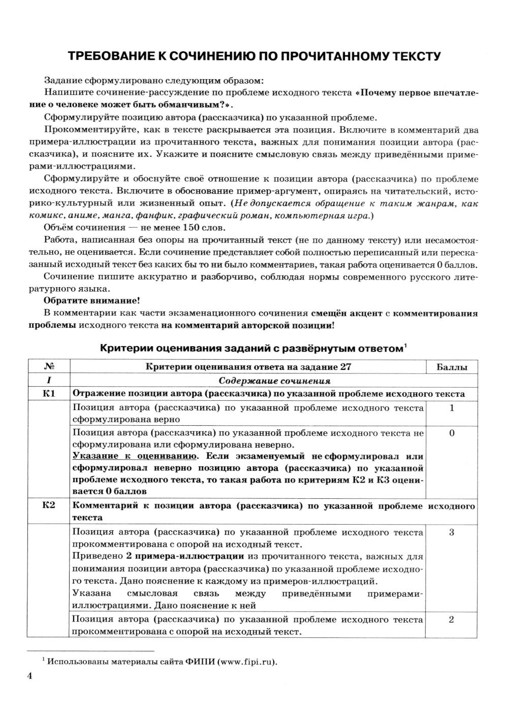 В пособии представлена многократно опробованная на практике методика поэтапной подготовки выпускника к написанию сочинения-рассуждения по прочитанному тексту. Каждая часть пособия соответствует критериям оценивания сочинения: формулировке авторской позиции по предложенной проблеме, созданию комментария, обосновывающего позицию автора, формулировке собственного мнения с его обоснованием на основе читательского, историко-культурного или жизненного опыта. Подробное разъяснение способа формулировки авторской позиции, подбора примеров-аргументов и их пояснения, определения типа смысловой связи и её функции в обосновании позиции автора, формулировки личностной позиции поможет учащимся быстро, эффективно и качественно подготовиться к написанию сочинения на предстоящем экзамене. В приложениях даны интересные тексты для проверки навыков написания сочинения и большой банк материалов из читательского опыта для обоснования собственной позиции. Пособие адресовано учащимся старших классов, преподавателям и методистам.| Издательство | Экзамен |