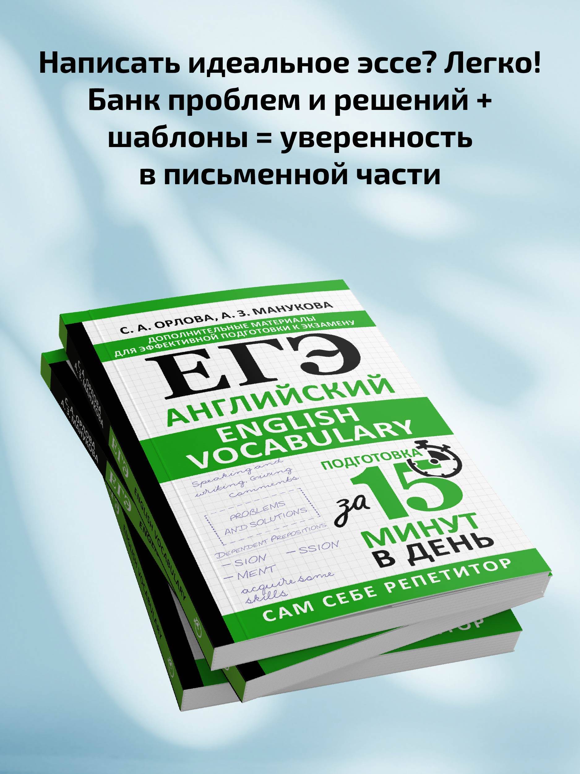 Путаете зависимые предлоги и сомневаетесь в том, какое слово подходит по смыслу? Не знаете, как написать блестящий аргумент? Тогда смело берите это пособие. Вы выучите лексику, необходимую для сдачи ЕГЭ по английскому языку, и благодаря специальным упражнениям научитесь активно ее использовать в устных и письменных ответах. Ключевая особенность пособия в том, что вся изученная лексика отрабатывается за счет многократного повторения не только в текущем, но и в последующих уроках, что позволяет выучить новое и в то же время повторить пройденный материал. Помимо этого, для каждой из основных тем, знание которых нужно для экзамена, представлен банк проблем и возможных решений, что позволит увереннее себя чувствовать при работе над письменной частью. А многочисленные упражнения, которые побуждают к самостоятельным рассуждениям, помогут в дальнейшем легко справляться с любой новой темой. Также в пособии уделено внимание устной части: есть пошаговая отработка структуры отдельных заданий, банк преимуществ и недостатков, а после выполнения упражнений вы получите готовые образцы устных ответов, которые напишете самостоятельно. Шаблоны, подсказки, структура заданий, комплексный подход к изучению темы - все это позволит подготовиться к сдаче ЕГЭ по английскому языку даже за пятнадцать минут ежедневных занятий.| Издательство | Издательство "АСТ" |