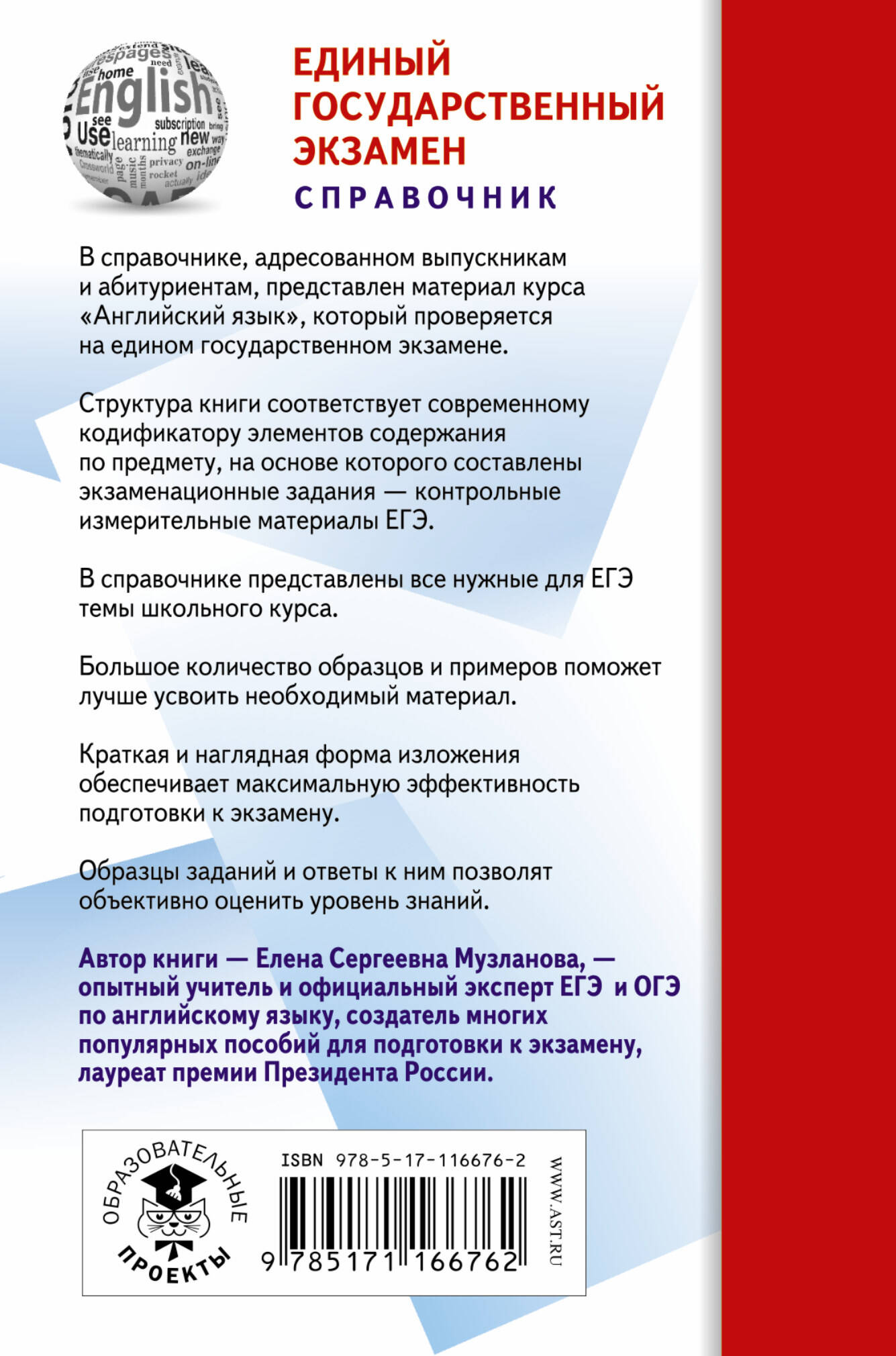 Справочник призван оказать практическую помощь в подготовке учащихся 11 классов и абитуриентов к единому государственному экзамену по английскому языку. Пособие составлено по тематическому принципу и содержит 8 разделов, которые включают справочную информацию по структуре ЕГЭ по английскому языку, материалы ко всем разделам экзамена ("Аудирование", "Чтение", "Грамматика и лексика", "Письмо" и "Говорение"), справочную лексико-грамматическую информацию, а также полный экзаменационный вариант ЕГЭ с комментариями к решению заданий. В каждый раздел ЕГЭ включены рекомендации по его выполнению, необходимый теоретический материал и образцы заданий экзаменационного типа, что позволит учащимся успешно подготовиться к экзамену.| Издательство | ИЗДАТЕЛЬСТВО "АСТ" |