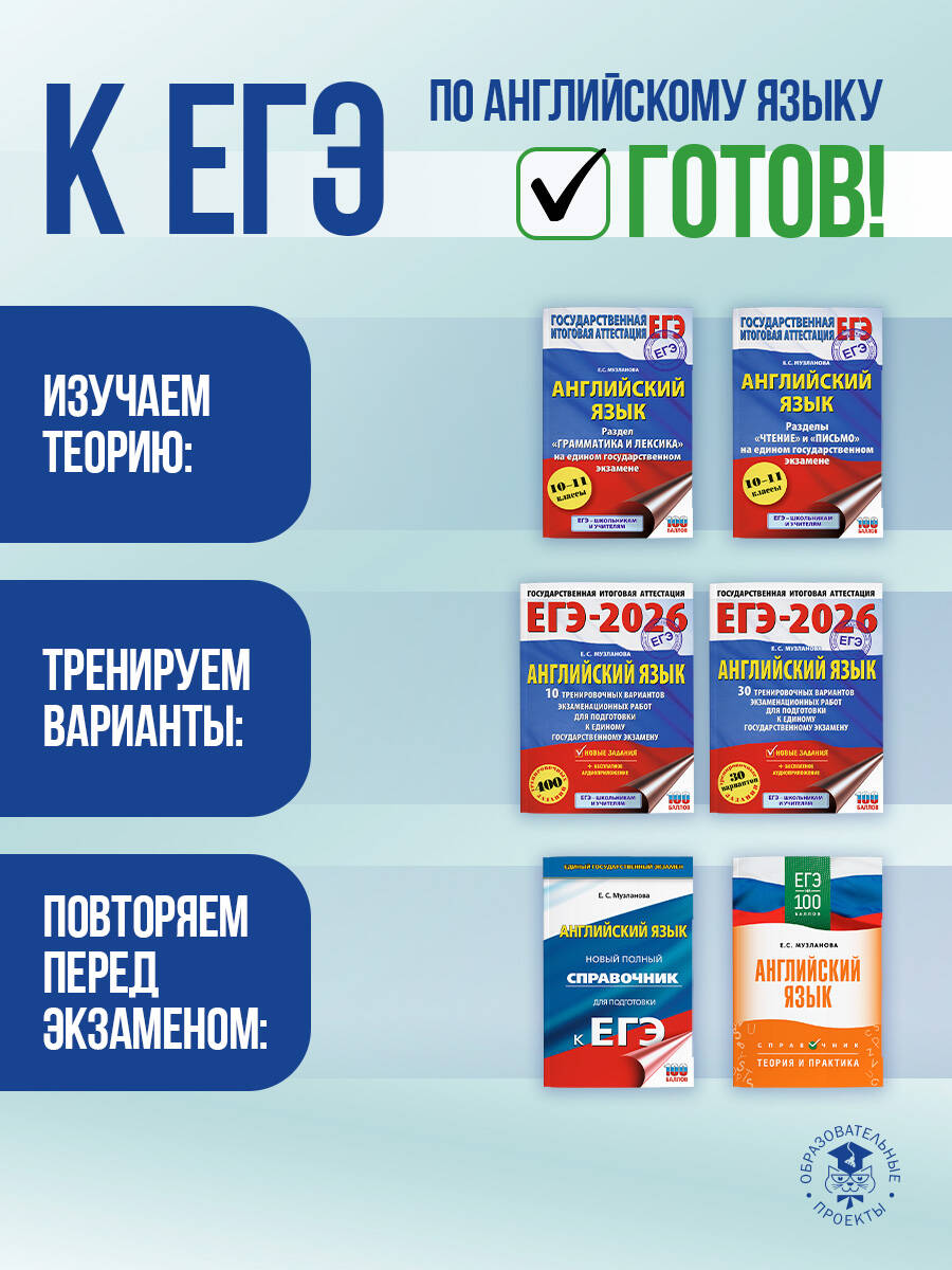 Справочник призван оказать практическую помощь в подготовке учащихся 11 классов и абитуриентов к единому государственному экзамену по английскому языку. Пособие составлено по тематическому принципу и содержит 8 разделов, которые включают справочную информацию по структуре ЕГЭ по английскому языку, материалы ко всем разделам экзамена ("Аудирование", "Чтение", "Грамматика и лексика", "Письмо" и "Говорение"), справочную лексико-грамматическую информацию, а также полный экзаменационный вариант ЕГЭ с комментариями к решению заданий. В каждый раздел ЕГЭ включены рекомендации по его выполнению, необходимый теоретический материал и образцы заданий экзаменационного типа, что позволит учащимся успешно подготовиться к экзамену.| Издательство | Издательство "АСТ" |