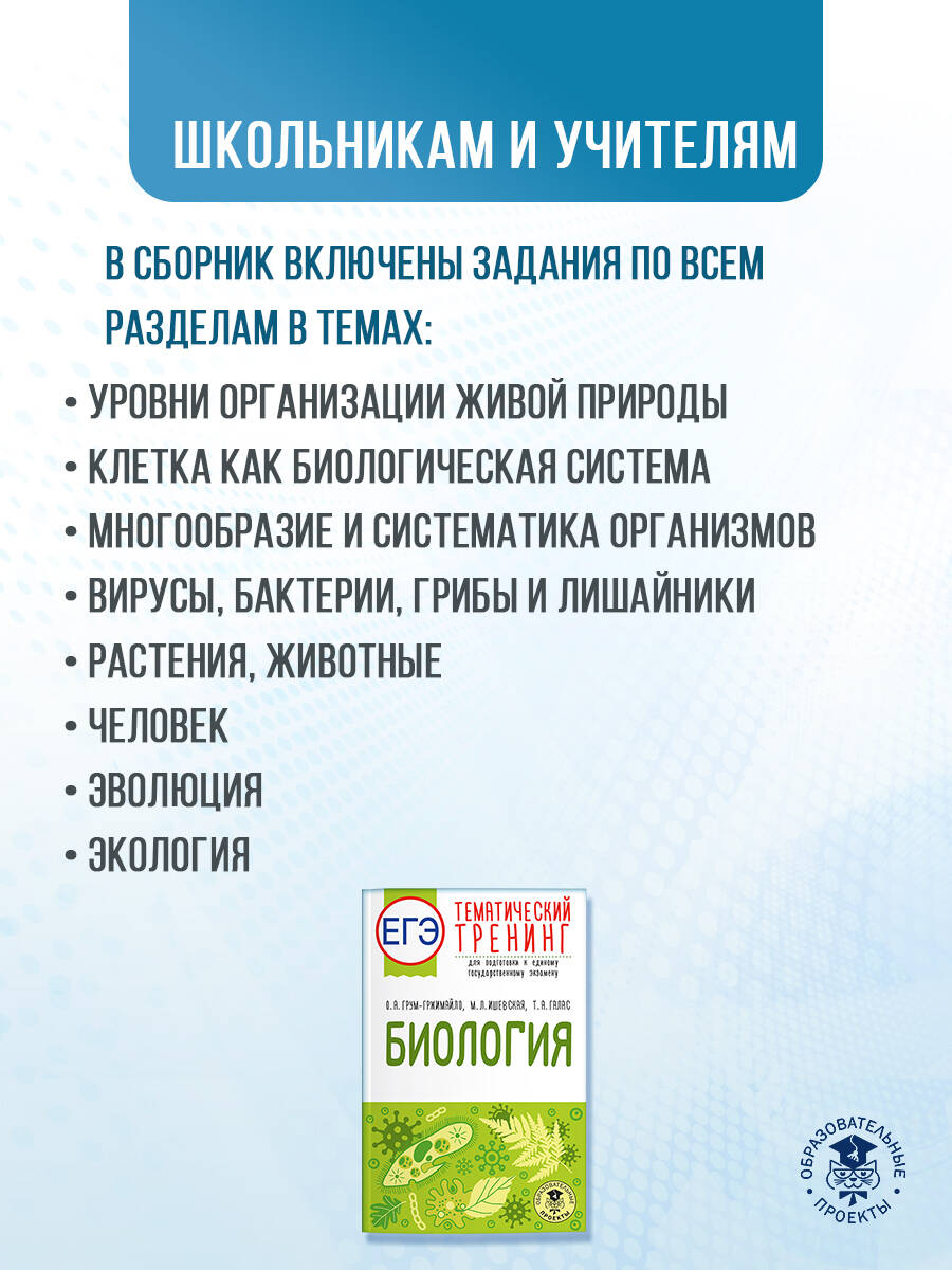 Аннотация: ЕГЭ. Биология. Тематический тренинг для подготовки к ЕГЭ