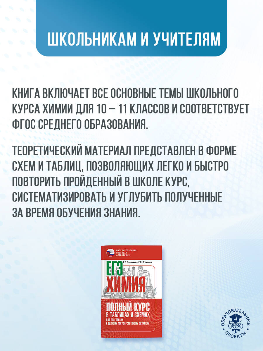 Аннотация: ЕГЭ. Химия. Полный курс в таблицах и схемах для подготовки к ЕГЭ