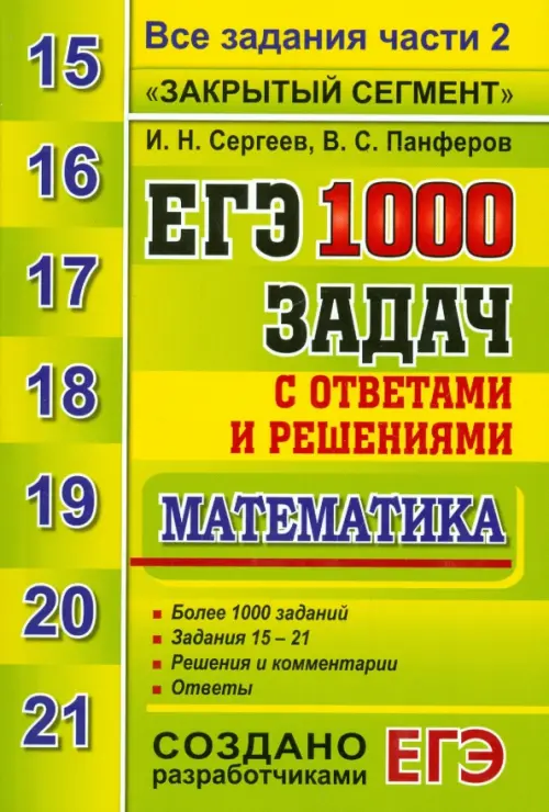 Аннотация: ЕГЭ. Математика. 1000 задач с ответами и решениями. Все задания части 2 "Закрытый сегмент"