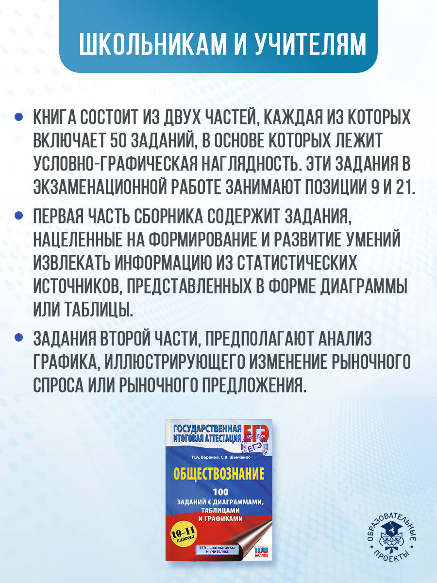 Аннотация: ЕГЭ. Обществознание. 100 заданий с диаграммами, таблицами и графиками