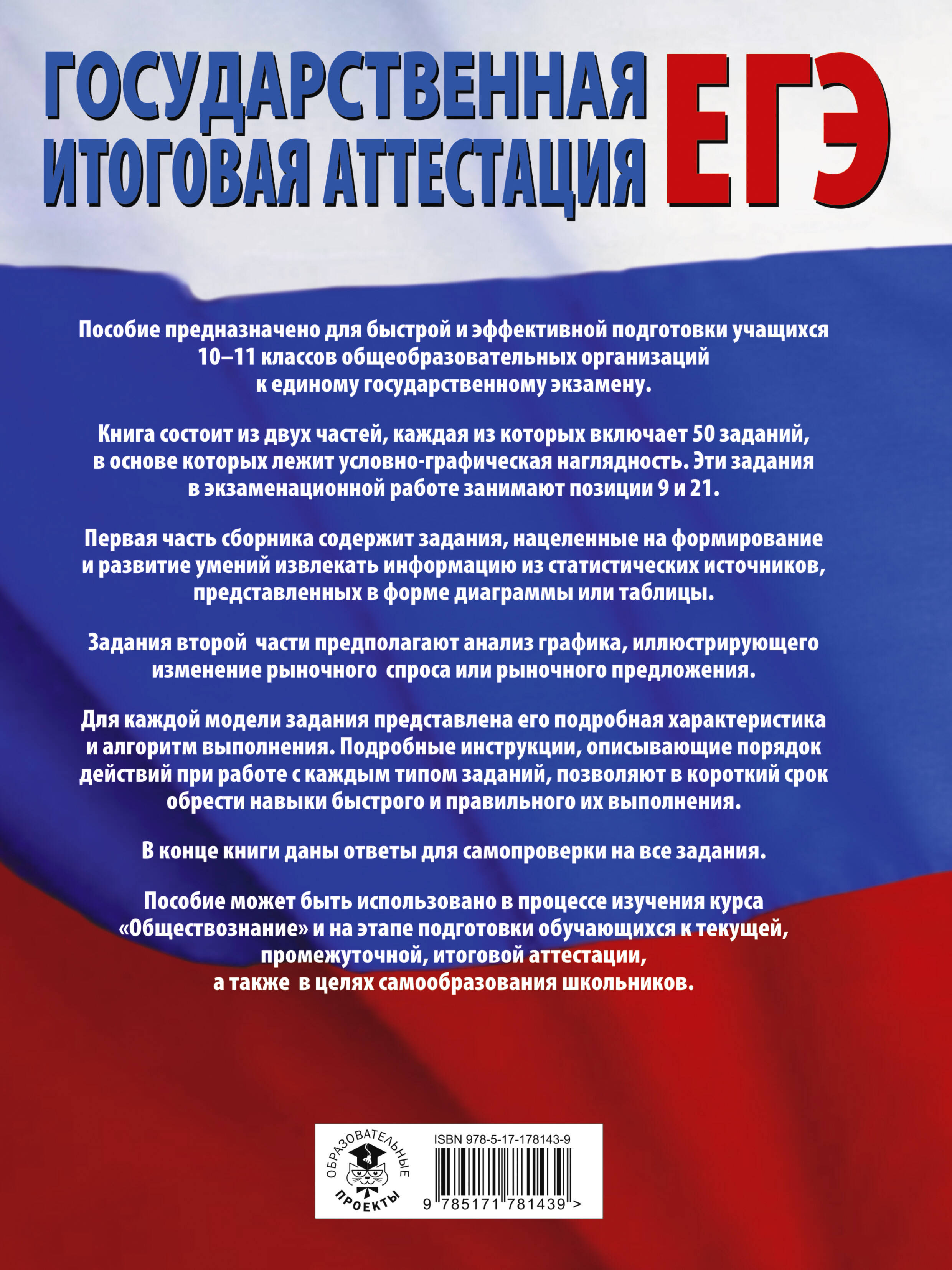 Пособие предназначено для быстрой и эффективной подготовки учащихся 10-11 классов общеобразовательных организаций к единому государственному экзамену. Книга состоит из двух частей, каждая из которых включает 50 заданий, в основе которых лежит условно-графическая наглядность. Эти задания в экзаменационной работе занимают позиции 9 и 21. Первая часть сборника содержит задания, нацеленные на формирование и развитие умений извлекать информацию из статистических источников, представленных в форме диаграммы или таблицы. Задания второй части, предполагают анализ графика, иллюстрирующего изменение рыночного спроса или рыночного предложения. Для каждой модели задания представлена его подробная характеристика и алгоритм выполнения. Подробные инструкции, описывающие порядок действий при работе с каждым типом заданий, позволяют в короткий срок обрести навыки быстрого и правильного их выполнения. В конце книги даны ответы для самопроверки на все задания. Пособие может быть использовано в процессе изучения курса "Обществознание" и на этапе подготовки обучающихся к текучей, промежуточной, итоговой аттестации, а также в целях самообразования школьников.| Издательство | Издательство "АСТ" |