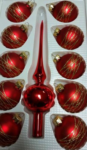 Egles galotnīte un 10 bumbas 6 cm Izgatavots no stikla; cena norādīta par komplektu.