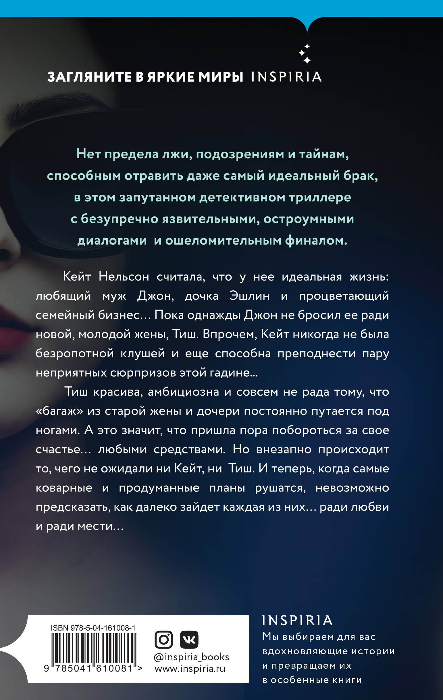БЕСТСЕЛЛЕР AMAZON CHARTS. Брак - это всегда серьезно. Это обет оставаться вместе в богатстве и бедности, здравии и болезни, пока смерть не разлучит вас. Но что, если вас разлучит не смерть… а женщина? Нет предела лжи, подозрениям и тайнам в этом запутанном детективном триллере с безупречно язвительными остроумными диалогами и ошеломительным финалом. Кейт Нельсон считала, что у нее идеальная жизнь: любящий муж Джон, дочка Эшлин и процветающий семейный бизнес… Пока однажды Джон не бросил ее ради новой, молодой жены, Тиш. Впрочем, Кейт никогда не была безропотной клушей и еще способна преподнести пару неприятных сюрпризов этой гадине... Тиш красива, амбициозна и совсем не рада тому, что «багаж» из старой жены и дочери постоянно путается под ногами. А это значит, что пришла пора побороться за свое счастье… любыми средствами. Но внезапно происходит то, чего не ожидали ни Кейт, ни Тиш. И теперь, когда самые коварные и продуманные планы рушатся, невозможно предсказать, как далеко зайдет каждая из них… ради любви и ради мести… «В "Его новой жене" две женщины безжалостно сталкиваются лицом к лицу. Кайра Руда знает, как создать идеальные, дьявольски прекрасные персонажи, которых любишь и ненавидишь одновременно. Это чтение в равной степени интеллектуальное и страстное. Оно завораживает». - Мэри Кубика, автор бестселлера New York Times «Другая миссис» «Даже в аду не встретишь такой ярости, какая возникает у обиженной женщины. Добавьте еще одну обиженную женщину, и у вас будут ингредиенты для настоящего огненного шторма... Приготовьте попкорн для этого романа, изобилующего восхитительно язвительными диалогами и приятными сюжетными поворотами». - Library Journal «Одна из самых коварных и запоминающихся книг, что я прочитала. Кайра Руда создала замечательных персонажей и историю, которая не отпустит: блестящую, темную и ослепительную». - Саманта Даунинг| Издательство | Эксмо |