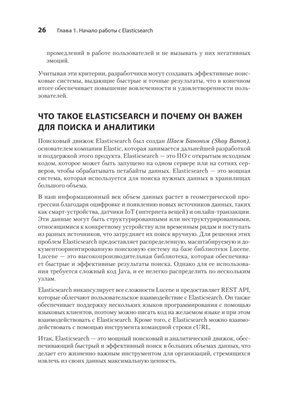 Elasticsearch - мощный инструмент для работы с большими объемами данных. Это масштабируемая, надежная и быстрая система со множеством функций для анализа и поиска данных. Книга представляет собой подробное руководство по использованию Elasticsearch для управления данными. В начале приводится обзор Elasticsearch, где описана его важность в современном мире. Далее рассматриваются основы Elasticsearch, включая установку, настройку и управление индексами. Затем автор переходит к более сложным темам, таким как обработка геопространственных данных и использование агрегаций для анализа данных. Кроме того, внимание уделено вопросам оптимизации работы, производительности и администрирования. Практические примеры помогут понять и применить изученные концепции. Вы получите глубокое представление об Elasticsearch и сможете использовать его для управления большими объемами данных и извлечения из них ценной информации.| Издательство | Питер |
