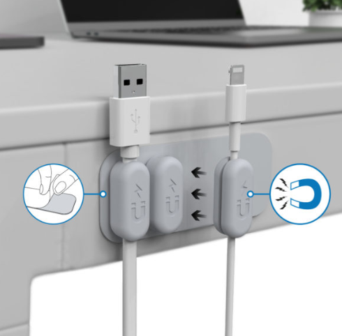 В комплект входят 5 магнитных держателей для кабелей + клейкая металлическая прокладка.