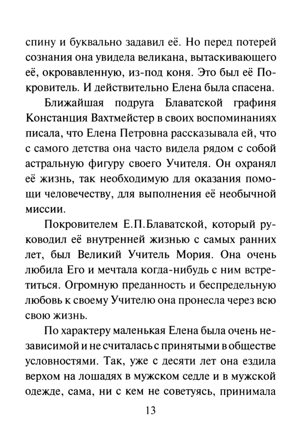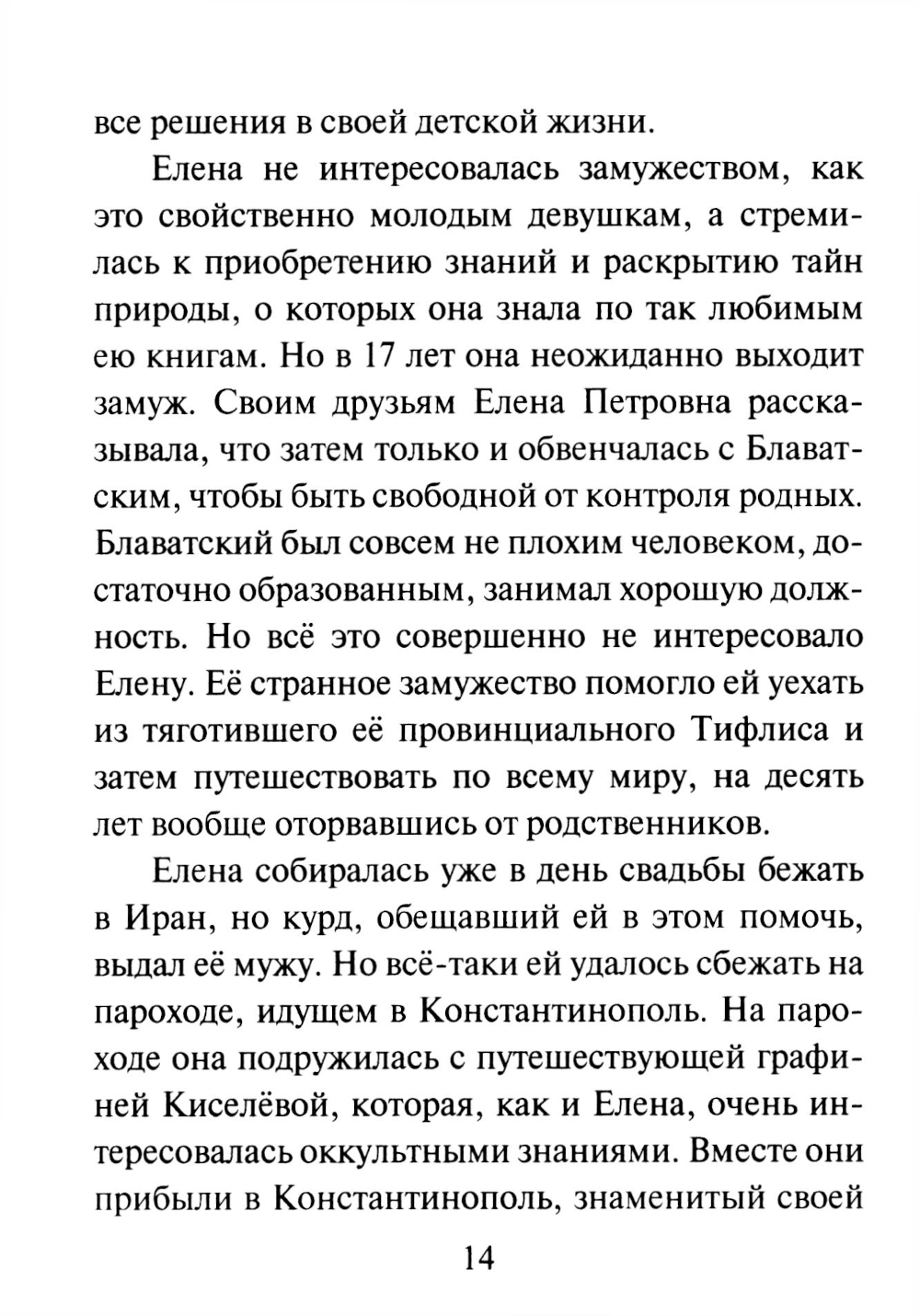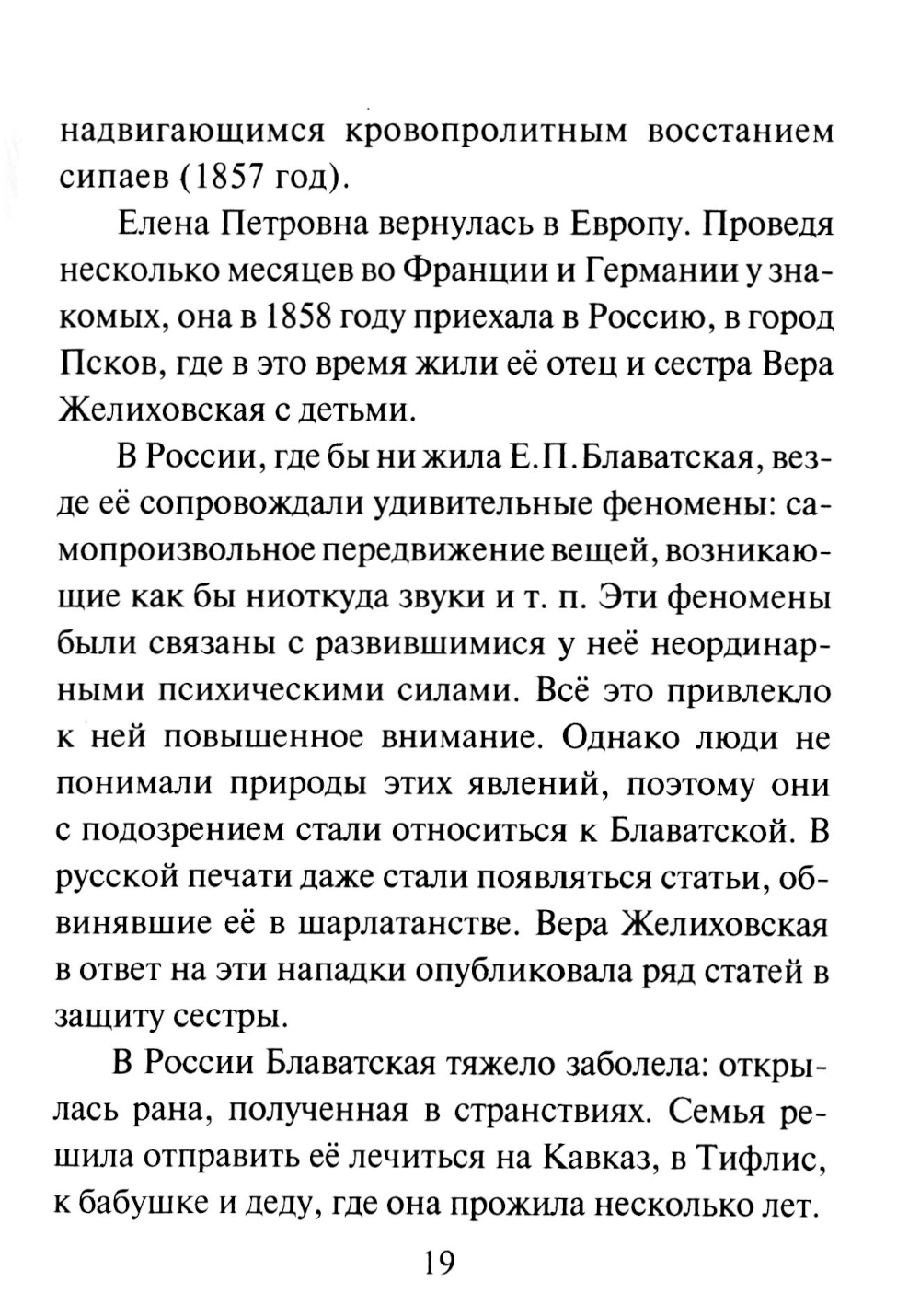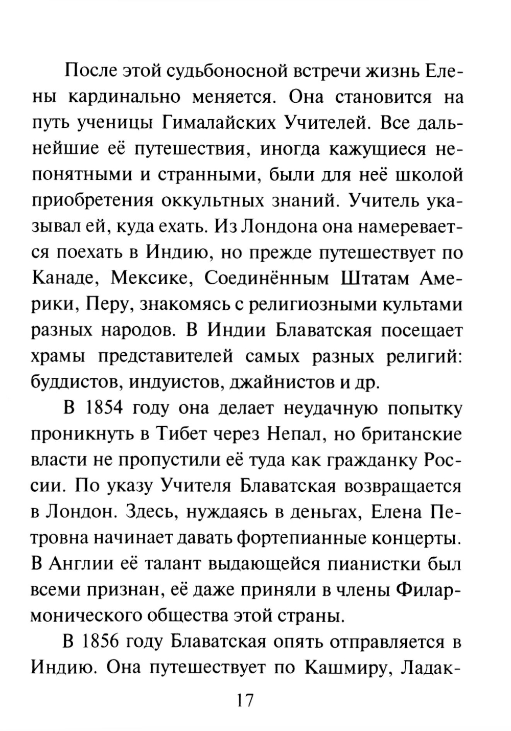 Личность Елены Петровны Блаватской (1831-1891), писательницы, путешественницы, философа, основательницы Теософского общества, одной из самых выдающихся женщин XIX столетия, волнует многих ищущих смысл жизни людей. Е.П. Блаватская посвятила свою жизнь теософии - Божественной мудрости - философии, к которой были причастны Пифагор, Платон, Парацельс, Спиноза и другие великие мыслители разных эпох. Но именно Е.П. Блаватская представила миру «Тайную доктрину» - синтез научной, философской и религиозной мысли, сохранявшейся тысячелетиями втайне от масс вплоть до конца XIX века, когда уровень сознания наиболее просвещённых людей планеты позволил её частично обнародовать. В данной работе приведена биография Е.П. Блаватской, составленная на основе известной в настоящее время литературы о ней, а также рассказано о её книгах, о работе по созданию Теософского общества, о её общении с Великими Учителями Братства Света.| Издательство | Дельфис |