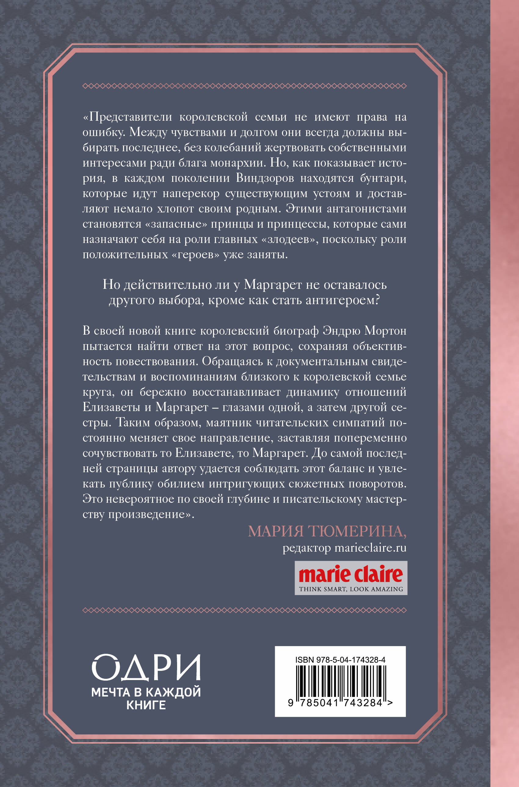 «Представители королевской семьи не имеют права на ошибку. Между чувствами и долгом они всегда должны выбирать последнее, без колебаний жертвовать собственными интересами ради блага монархии. Но, как показывает история, в каждом поколении Виндзоров находятся бунтари, которые идут наперекор существующим устоям и доставляют немало хлопот своим родным. Этими антагонистами становятся «запасные» принцы и принцессы, которые сами назначают себя на роли главных «злодеев», поскольку роли положительных «героев» уже заняты. Но действительно ли у Маргарет не оставалось другого выбора, кроме как стать антигероем? «В своей новой книге королевский биограф Эндрю Мортон пытается найти ответ на этот вопрос, сохраняя объективность повествования. Обращаясь к документальным свидетельствам и воспоминаниям близкого к королевской семье круга, он бережно восстанавливает динамику отношений Елизаветы и Маргарет - глазами одной, а затем другой сестры. Таким образом, маятник читательских симпатий постоянно меняет свое направление, заставляя попеременно сочувствовать то Елизавете, то Маргарет. До самой последней страницы автору удается соблюдать этот баланс и увлекать публику обилием интригующих сюжетных поворотов. Это невероятное по своей глубине и писательскому мастерству произведение». - Мария Тюмерина, редактор marieclaire.ru| Издательство | ООО "Издательство "Эксмо" |