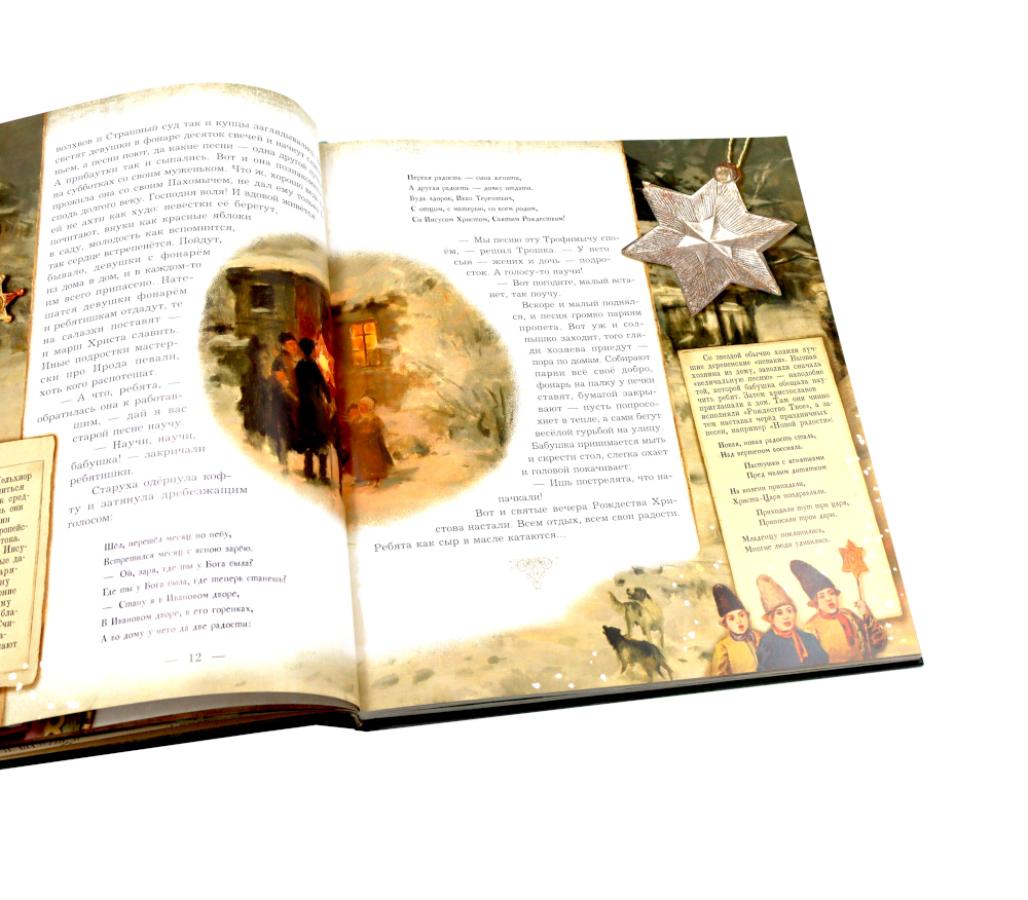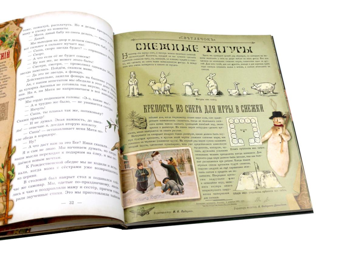 Сборник посвящен празднику елки в России конца XIX - начала XX века. Святочные рассказы и стихотворения популярных авторов, подлинные письма, отрывки из журнальных статей, воспоминания современников живо воссоздают атмосферу рубежа веков. Обширный историко-бытовой комментарий, подробные описания детских елочных затей и всевозможных поделок знакомят читателя с традициями празднования Нового года и Рождества. Сто лет тому назад череда зимних праздников, самых щедрых на чудеса, была та же и не та, что нынче. В этой книге, как в луче волшебного фонаря, встает перед нами праздник ёлки со всеми его упоительными подробностями. Радостные секреты и новенькие матроски, заграничные картонажи и прехорошенькие бонбоньерки, новогодние хлопоты и семейные забавы прежних дней. Стоит перевернуть страницу - и вот они, ёлочные базары на площадях, скрип полозьев, треск хлопушек, шорох бумаги для золочения орехов, запах хвои и медовых пряников, желанные подарки. Та же знакомая тайна, и ворох прелестных пустяков, и ёлка в полном блеске святочного убранства - совсем как сто лет назад. - Письма детей конца XIX - начала XX века: чем интересовались, как веселились, как праздновали Рождество и Новый год. - Статьи, забавы и поделки из старинных детских журналов. - Старинные ёлочные игрушки из трех крупнейших русских коллекций. А еще: - Альбом старинных силуэтов - Комические маски: Пьеретта и усач - Святочные гадания для зимних вечеров - Щелкунчик - балет и рождественская сказка в восьми картинах - Съедобный народец для праздничного стола - Снежные фигуры и домашний маскарад - Рождественский Дедка, Ёлкич, Дед Мороз - «В лесу родилась ёлочка» - история главной праздничной песенки - Игра «Механические экипажи» - Все необходимое для наиболее изящного украшения ёлки Оригинальные объемные конструкции, клапаны, интерактивные иллюстрации, картонные ёлочные игрушки, комические маски. Составитель: Е. Ким.