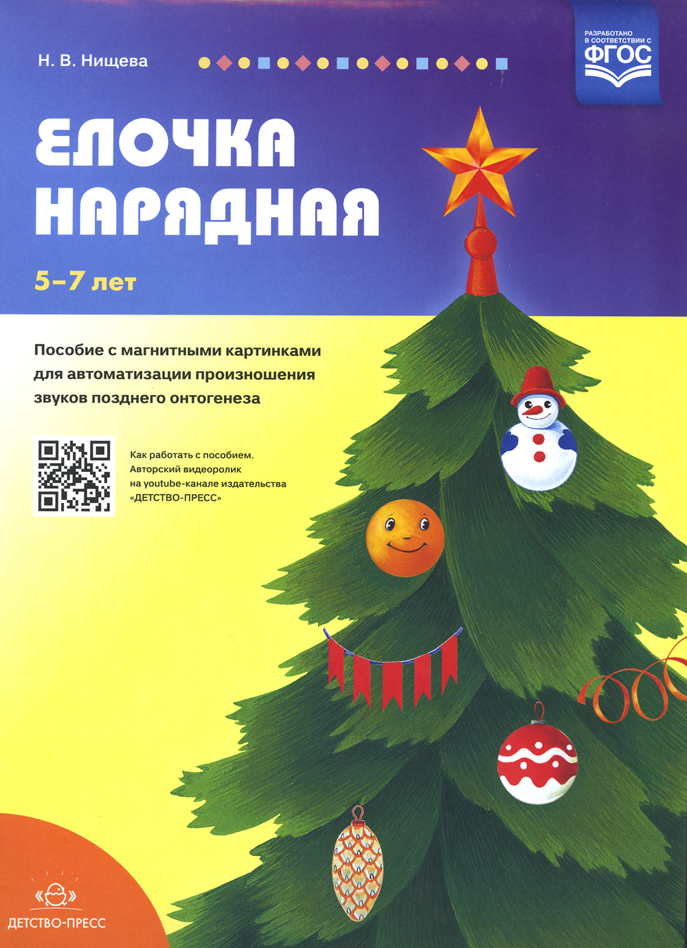 Аннотация: Елочка нарядная. Пособие с магнитными картинками для автоматизации произношения звуков позднего онтогенеза. 5-7 лет