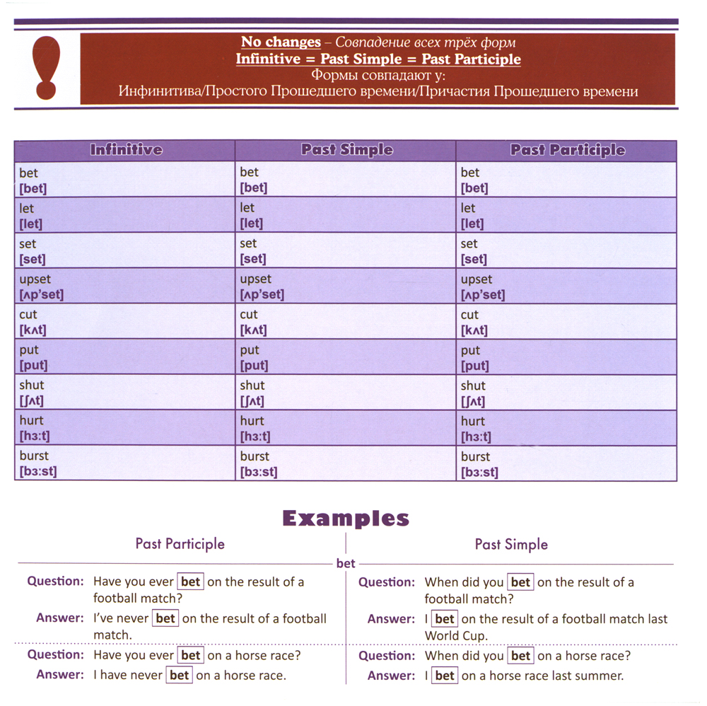 В английском языке есть глаголы правильные и неправильные. Правильные глаголы - те, которые образуют форму прошедшего простого времени и причастия прошедшего времени по правилу - нужно прибавить окончание ed. Например, like - liked - liked. Неправильные глаголы образуют эти формы не по правилу, поэтому их нужно запоминать. Многим учащимся это кажется трудным, потому что неправильных глаголов много и их сложно запомнить. В этой книге представлены неправильные глаголы, но они разбиты на группы в зависимости от того, как они образуются. Получается, что нужно выучить, по какому принципу образуются группы, что гораздо легче, чем учить каждый глагол отдельно. Также в книге даны примеры того, как использовать эти глаголы в речи.| Издательство | ЗНАТОК |