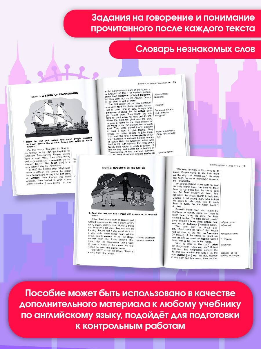 Предлагаемое пособие предназначено для учащихся 5-х классов общеобразовательной школы. В сборнике десять историй, которые созданы англоязычными писателями. Каждая из историй, включенных в пособие, снабжена серией упражнений, помогающих вникнуть в смысл прочитанного, усвоить новую лексику и подготовиться к изложению содержания на английском языке. В конце пособия предусмотрен словарь новых слов и ответы. Пособие способствует обогащению словарного запаса, знакомит с грамматикой, способствует улучшению правописания, погружает в мир английского языка.